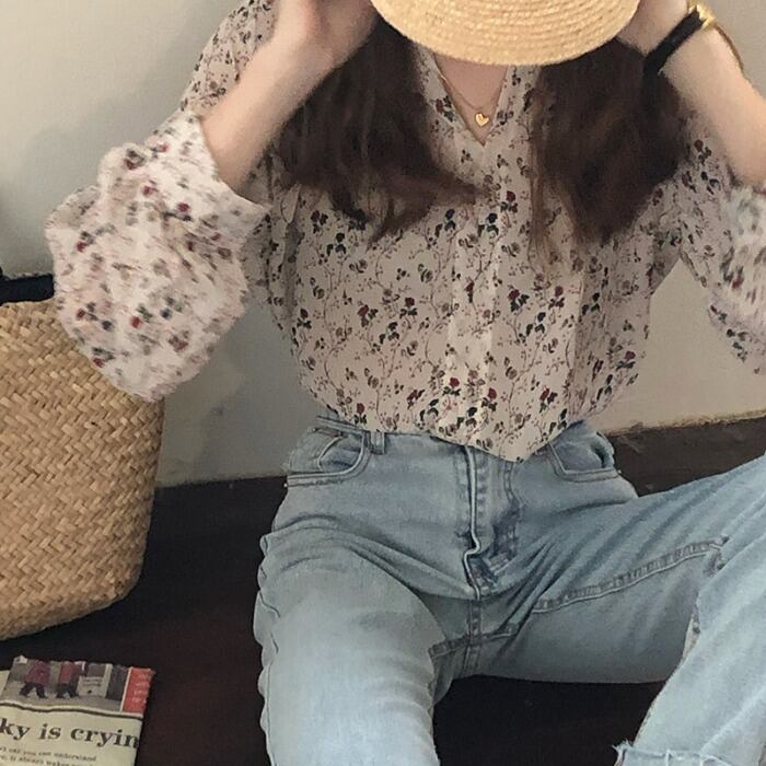 シフォンシャツ レディースフローラルスプリングスタンダードルーズ ロング レトロ 春物 花柄 長袖 MONROE2918395701