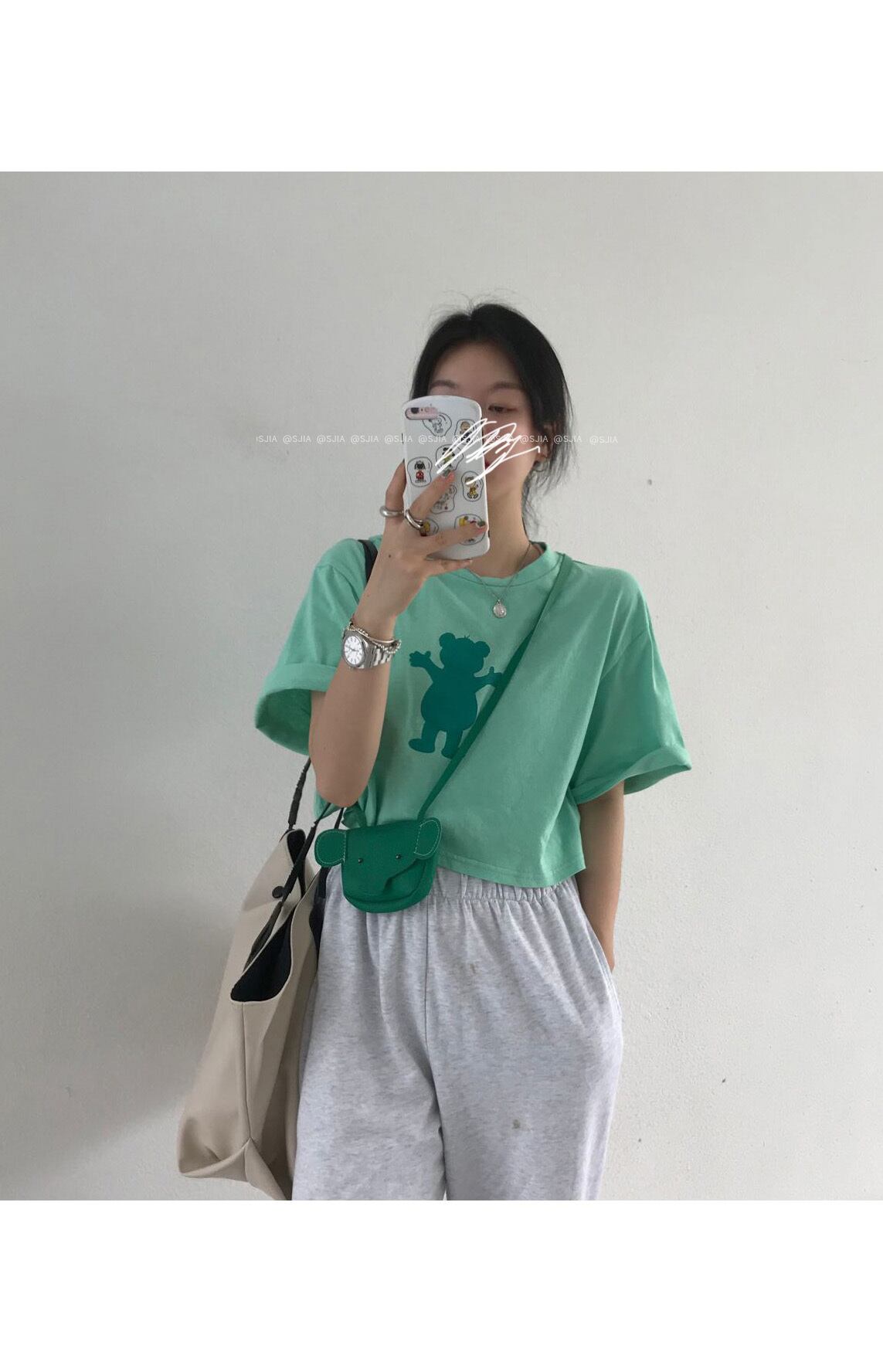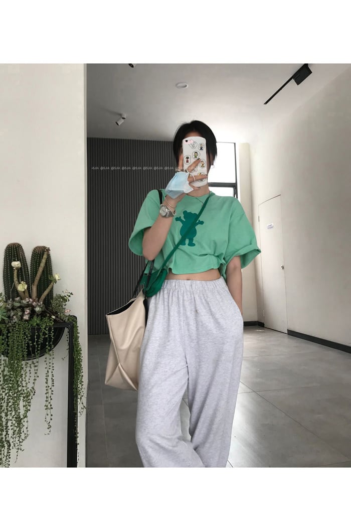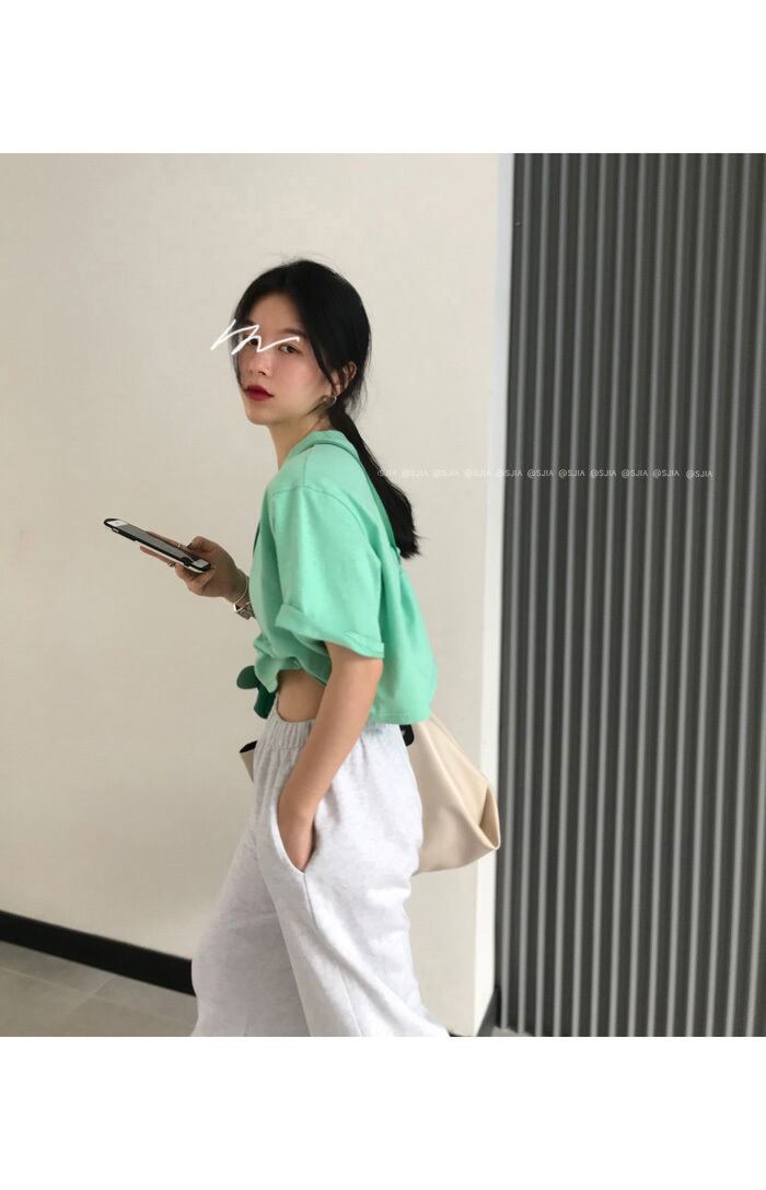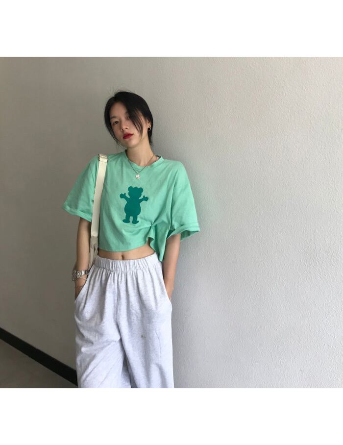 グリーンTシャツレディースルーズトップス 夏服韓国ファッション 夏物 ミドル丈 MONROE93045262201
