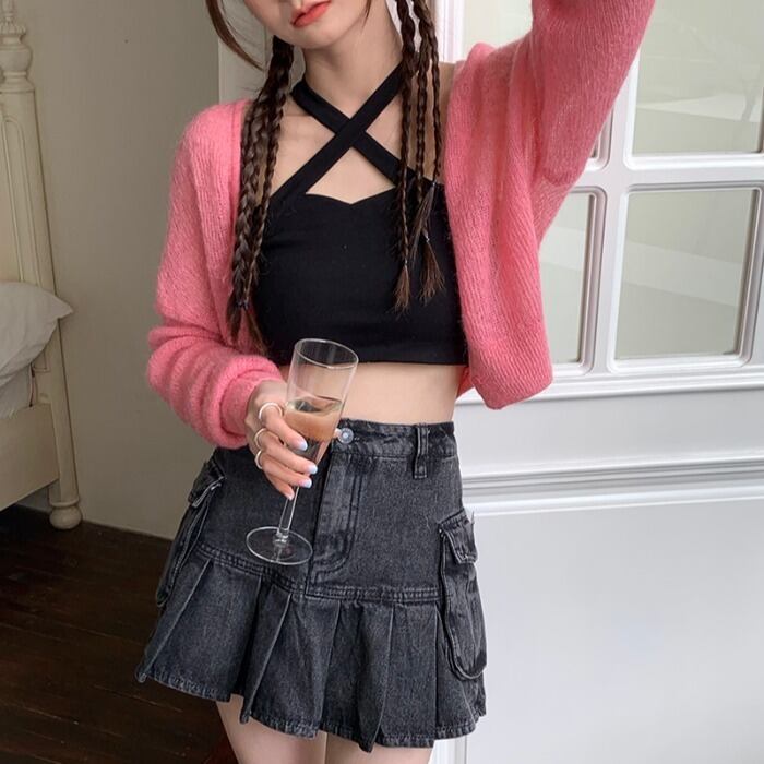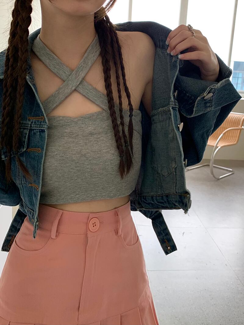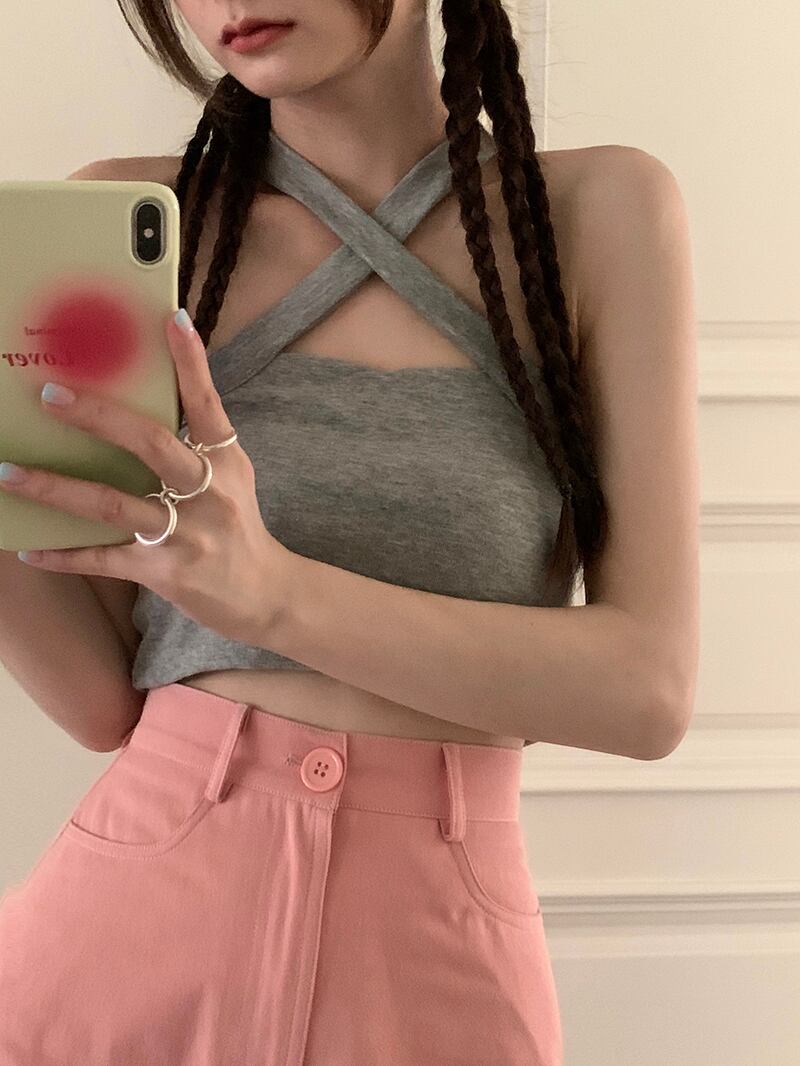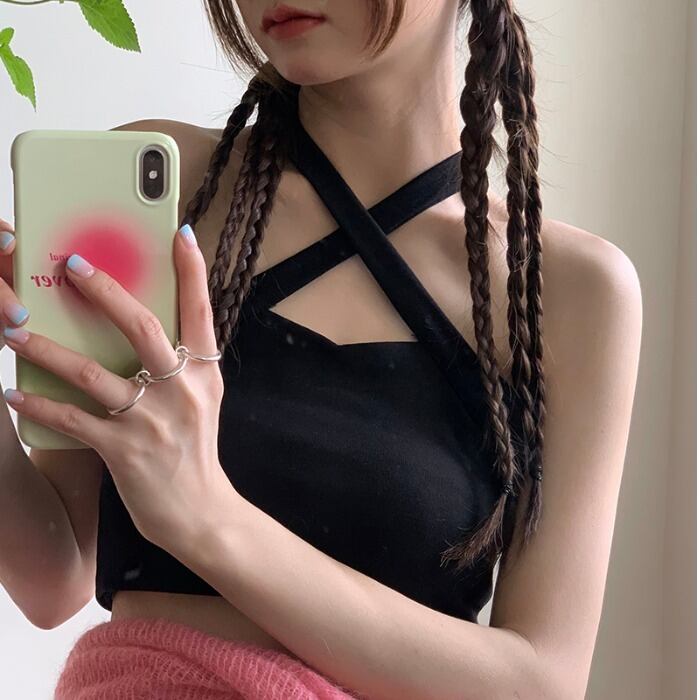 韓国ファッションホルターストラップレスショートレディース夏服ソリッド カラートレンドトップス ゆったり 夏物 ソリッドカラー スタイル MONROE31020090419