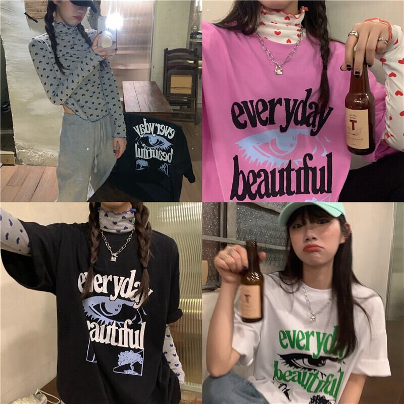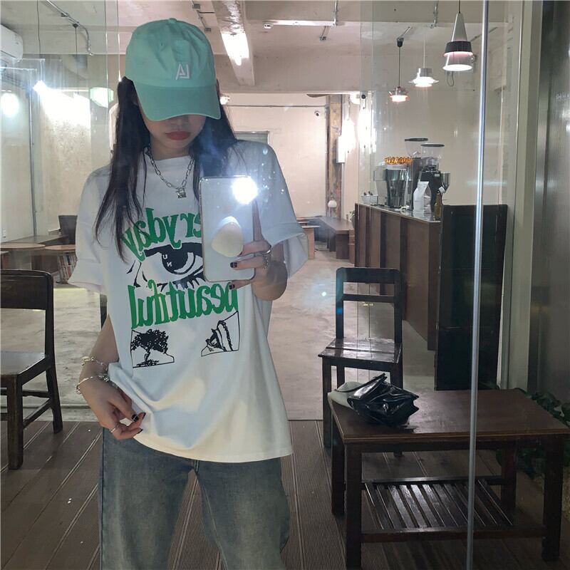 ブラックTシャツシャツ 夏服ルーズゆったり韓国ファッショントレンドトップス コットン 夏物 スタイル MONROE12035021630