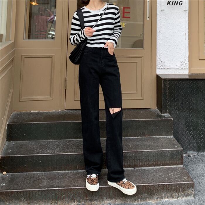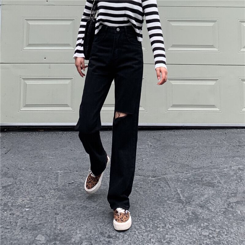 ジーンズ レディーストレンドスプリングブラックパンツ ハイウェストルーズ 春物 ウエスト MONROE24654241175