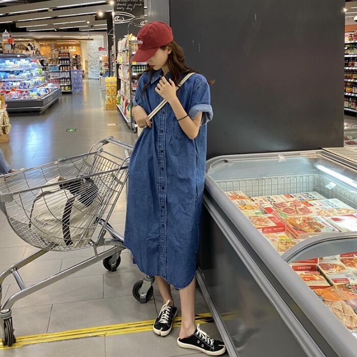 シャツ スカート レディーススタンダードワンピース夏服ロング レトロ 夏物 ミドル丈 MONROE96761170580