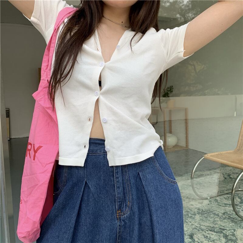 スタンダードVネックルーズセーター レディース夏服ショートカーディガンジャケット トップス レトロ 夏物 MONROE64456278681