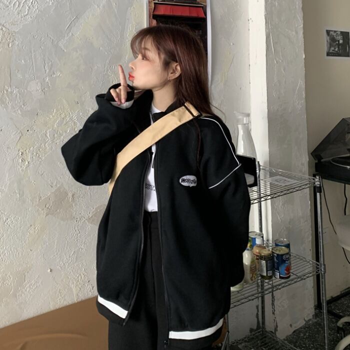 韓国ファッションルーズブラックショートジャケット レディーストレンドスプリング秋物カジュアル ロング 春物 オータム スタイル 長袖 MONROE14431200022