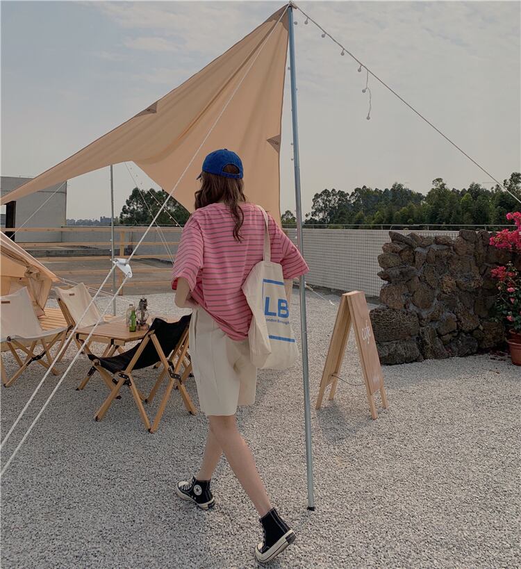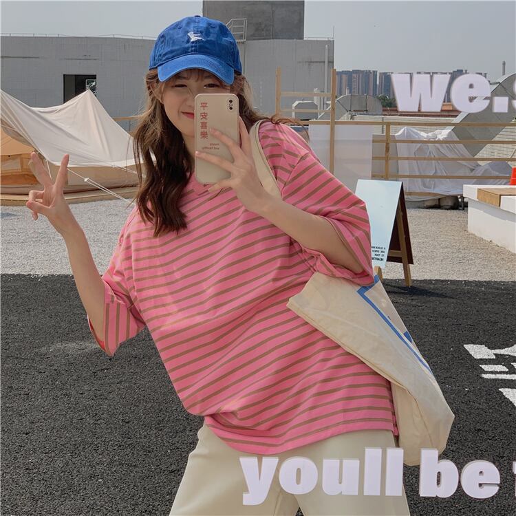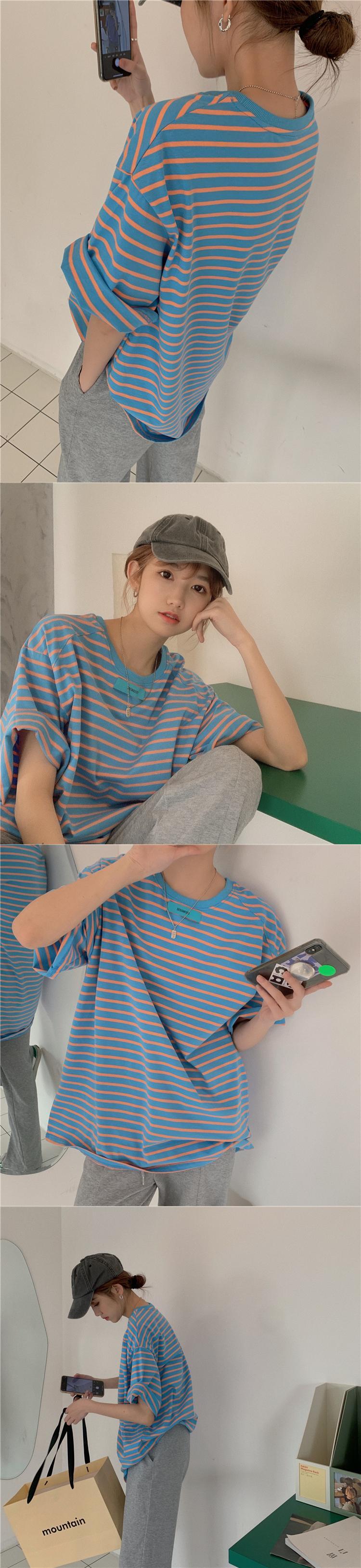 ストライプTシャツシャツ レディース韓国ファッションルーズ夏服ゆったりトップス 夏物 スタイル ミドル丈 MONROE79345064270