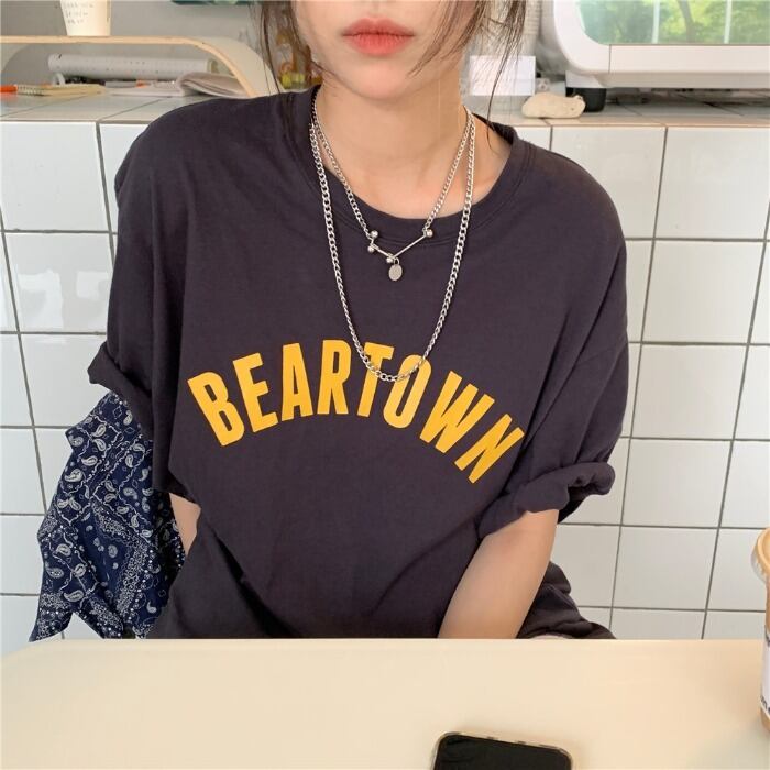 韓国ファッションルーズ夏服ゆったりシャツ トップス Tシャツトレンド コットン 夏物 ピュア スタイル MONROE19317352190