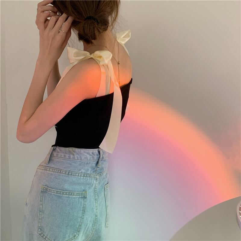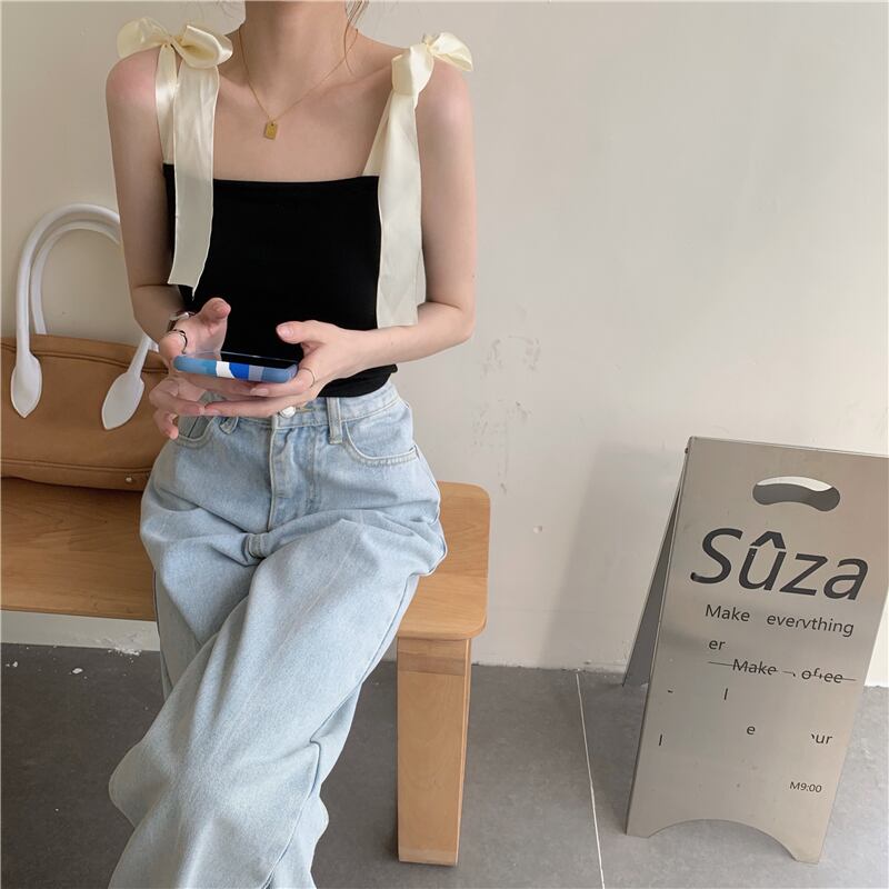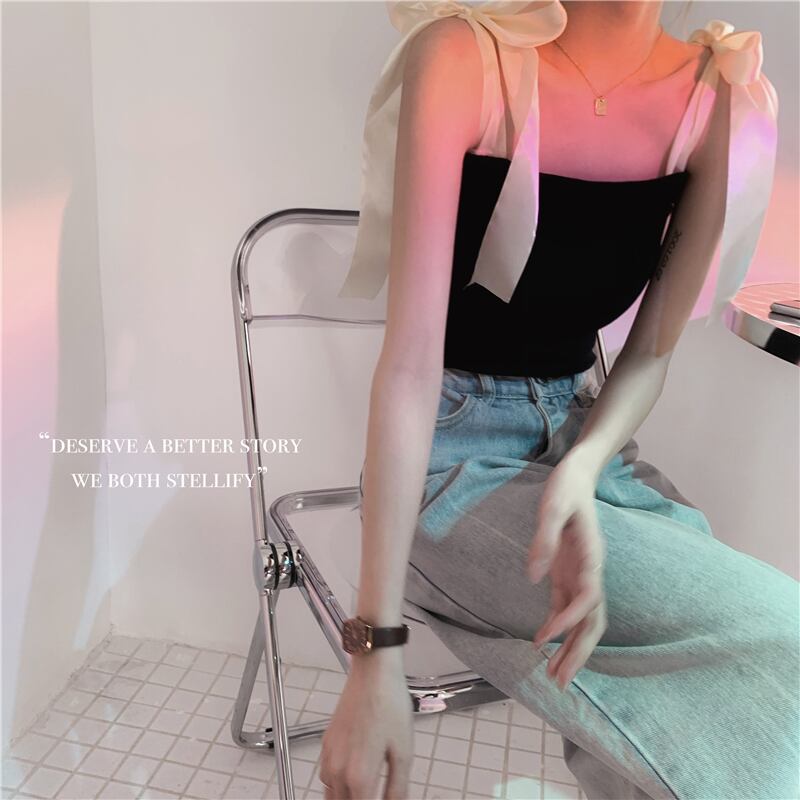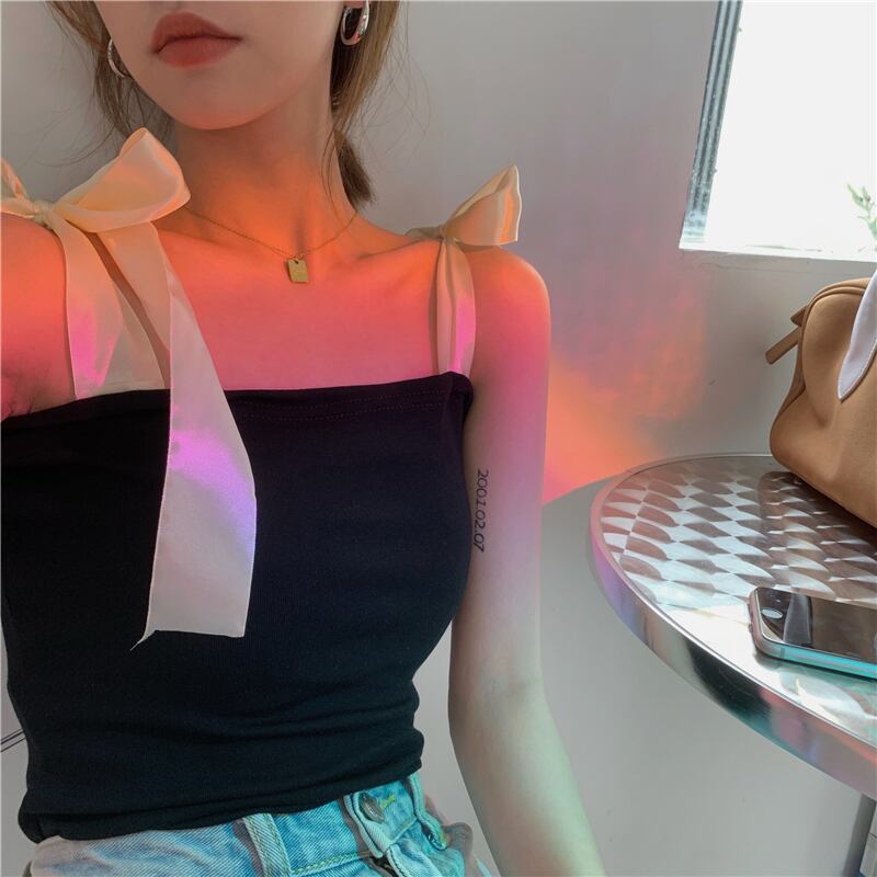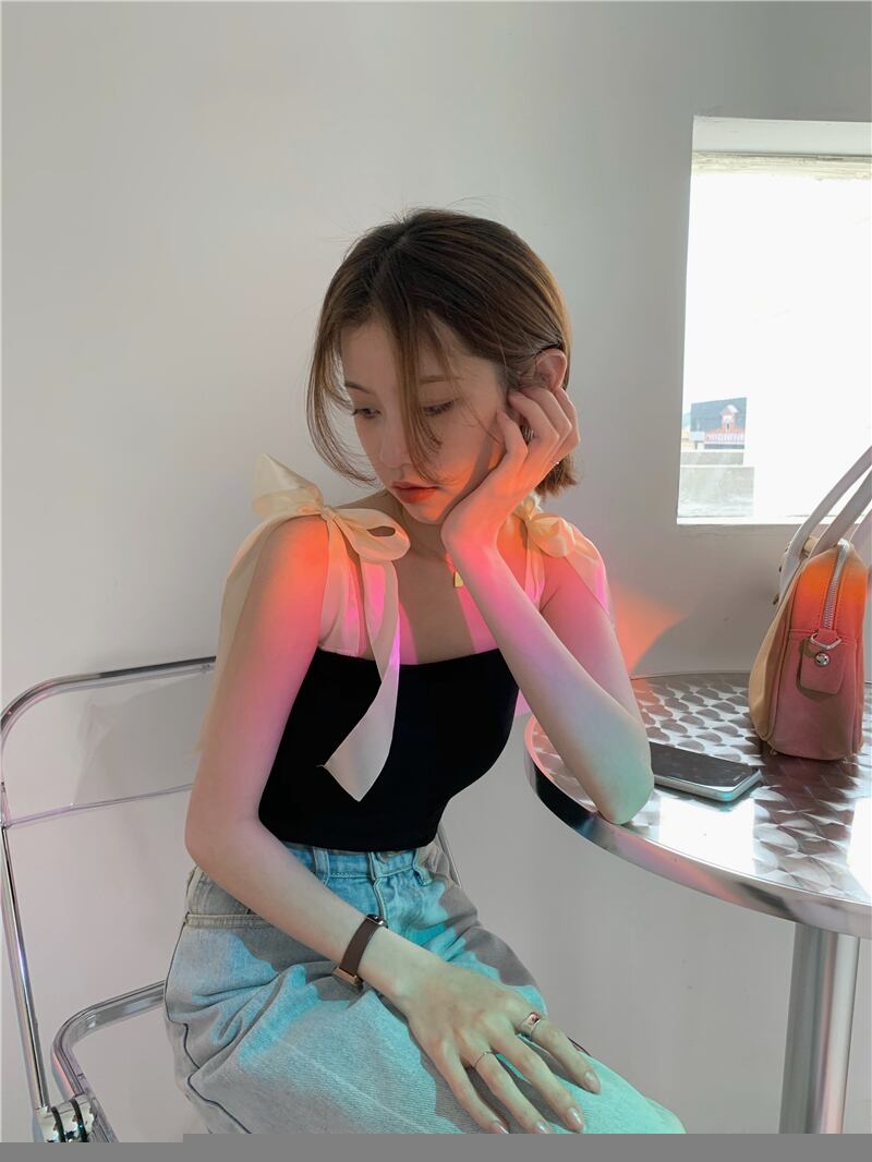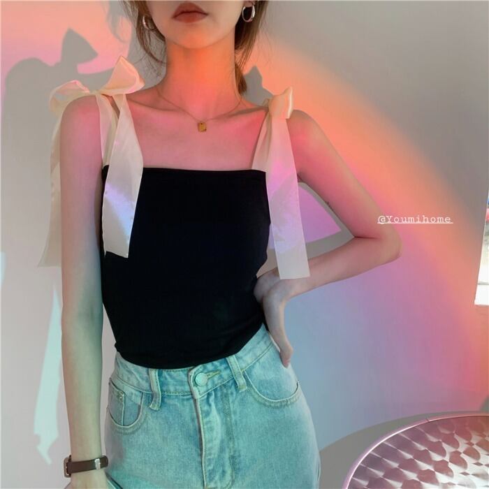 トレンドブラックレディース夏服ショートトップス リボン 夏物 MONROE2891490988