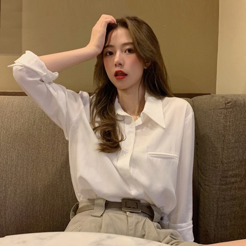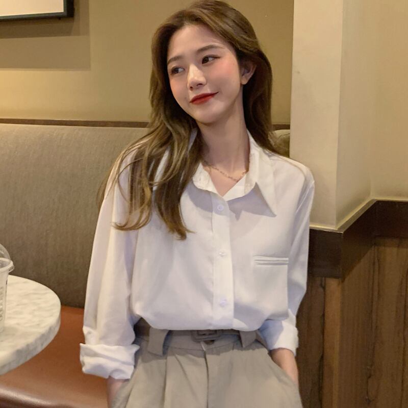 スプリング韓国ファッションルーズ薄手ホワイトシャツ カジュアルジャケット 春物 ミドル丈 SPM75927430528