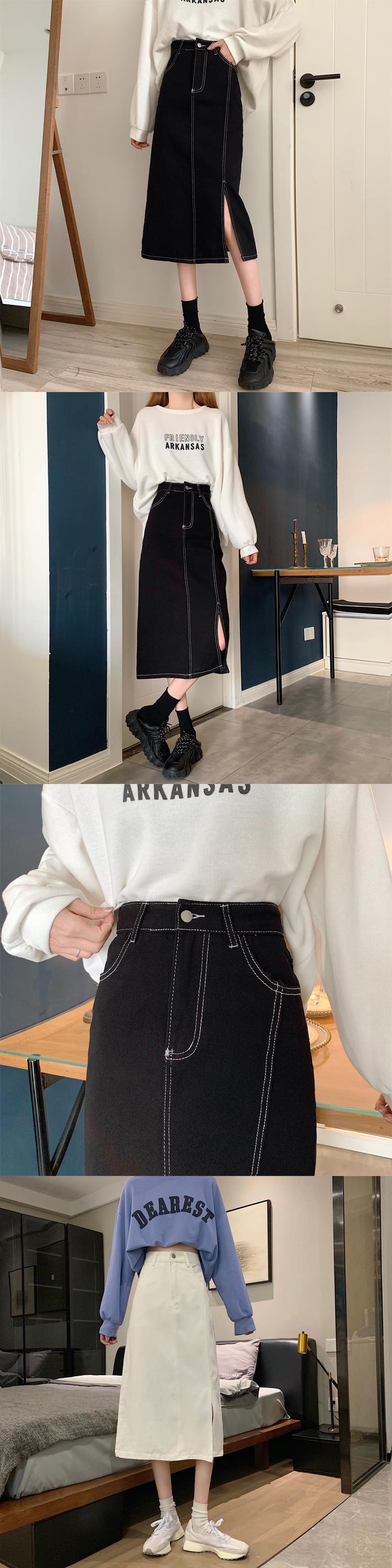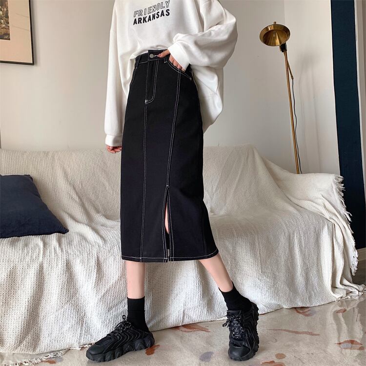 スプリングブラックスカート レディース薄手ハイウェストAラインスタンダード レトロ 春物 ウエスト ミドル丈 SPM86016089181