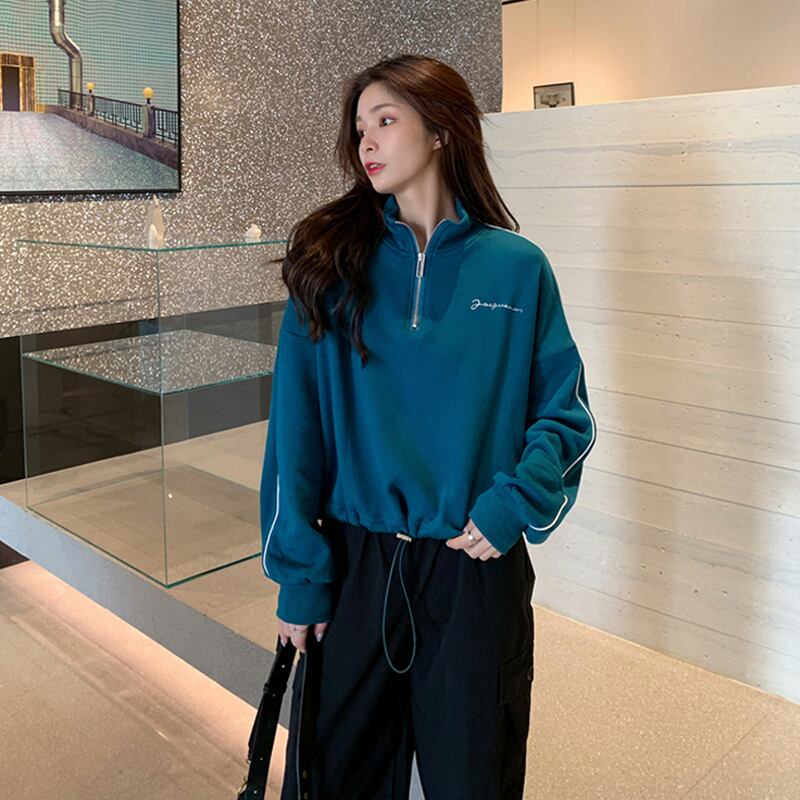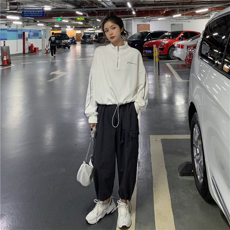 ホワイトセーター レディーススプリング韓国ファッションスタイルルーズギャザーショートトップス ストリート 春物 SPM15586687105