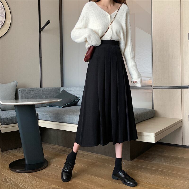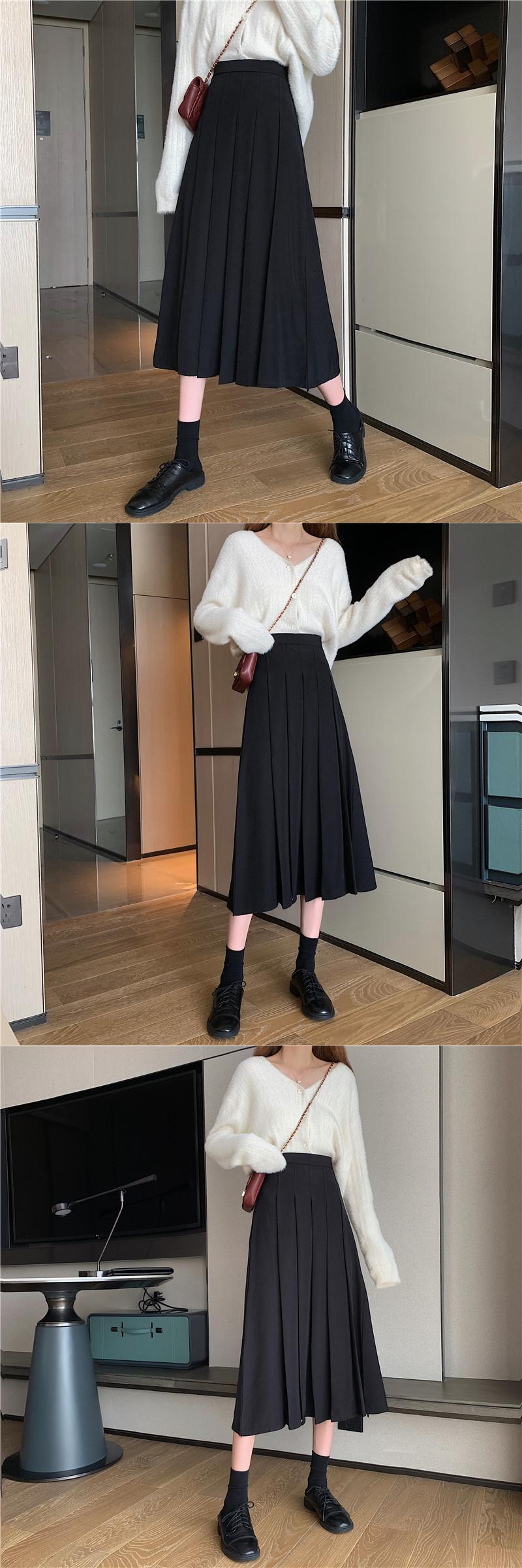 スプリング秋物スカート レディースブラックプリーツ薄手ハイウェストAライン 春物 オータム ウエスト ミドル丈 SPM88779930566