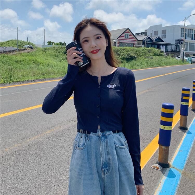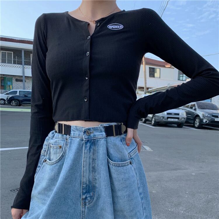 ブラックセーター スプリング韓国ファッションスリムカーディガンショートゆったりトップス 春物 スタイル SPM66355826108