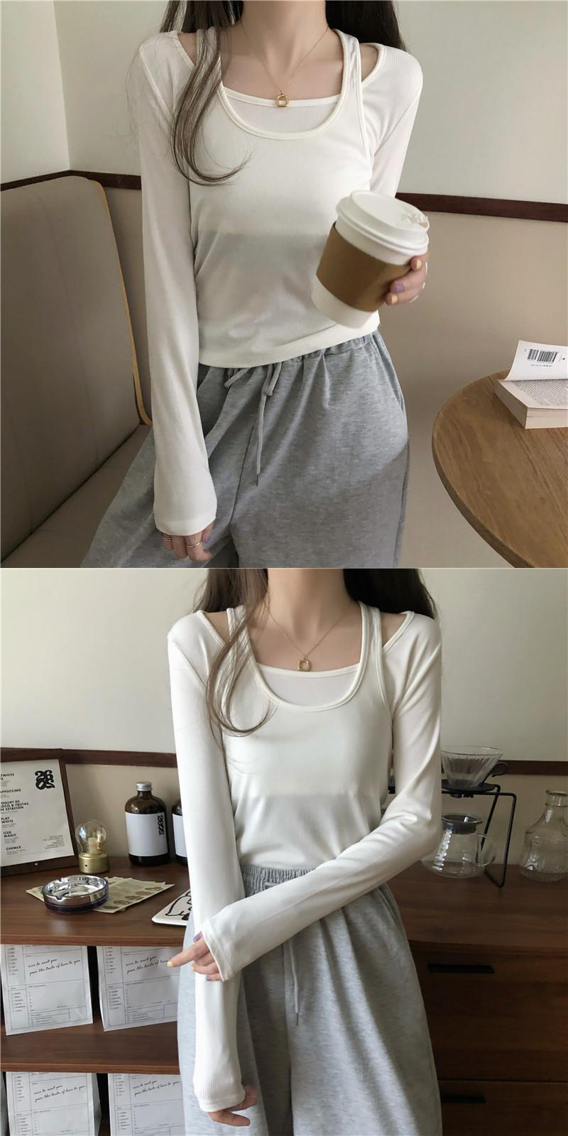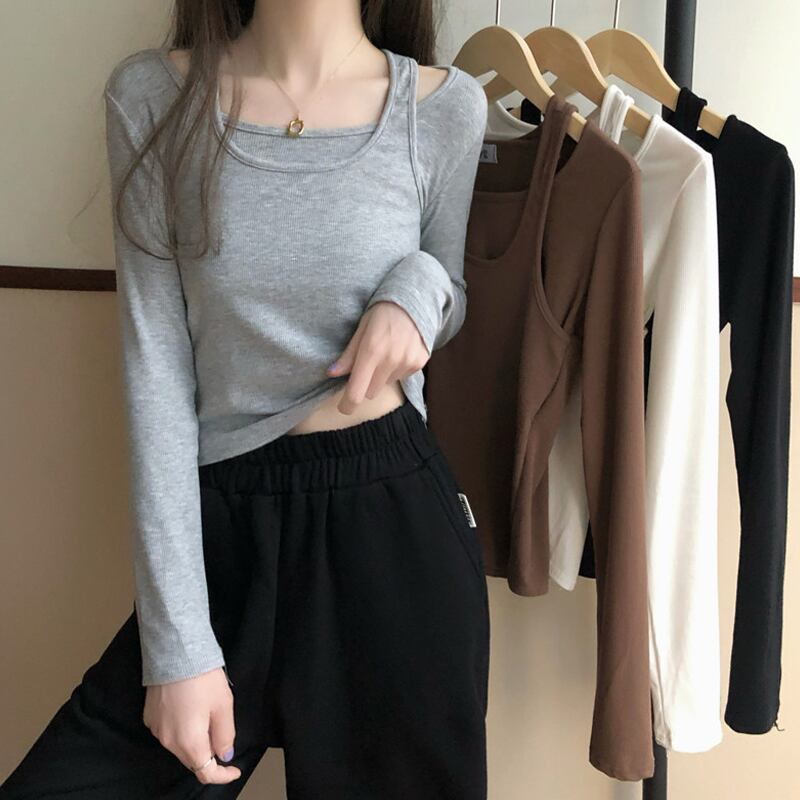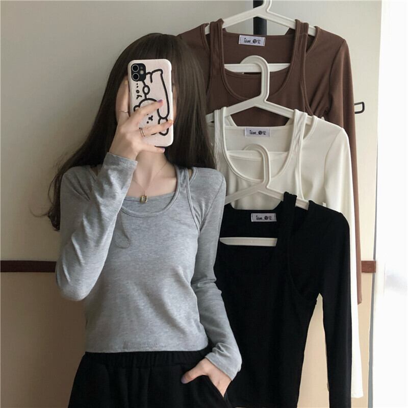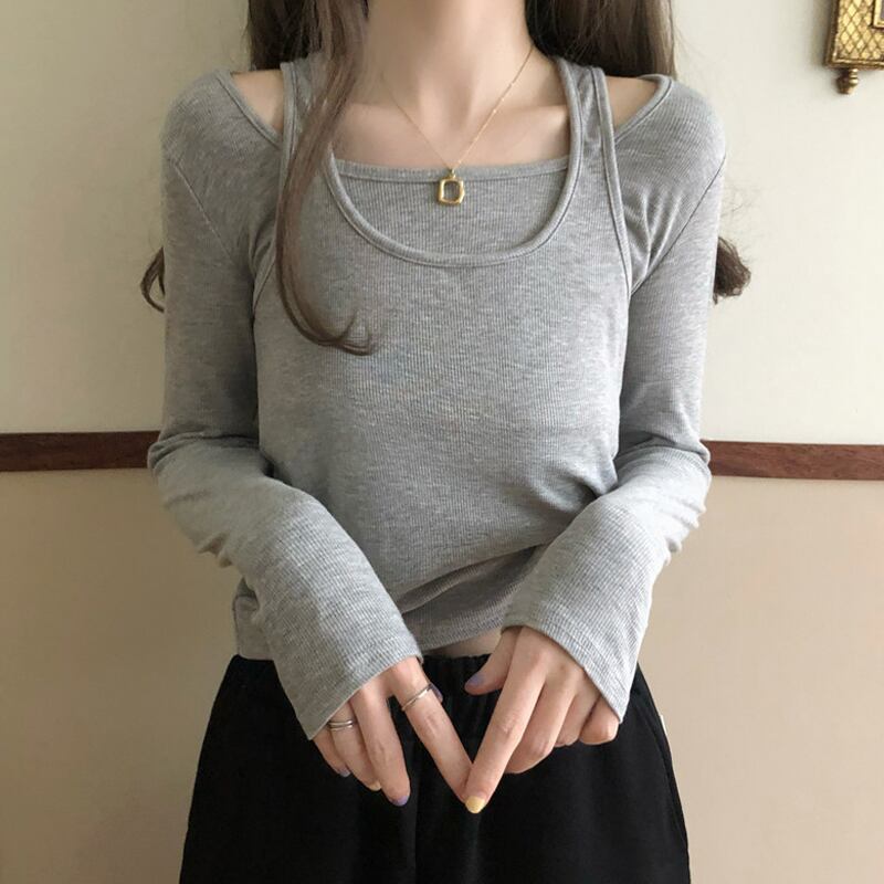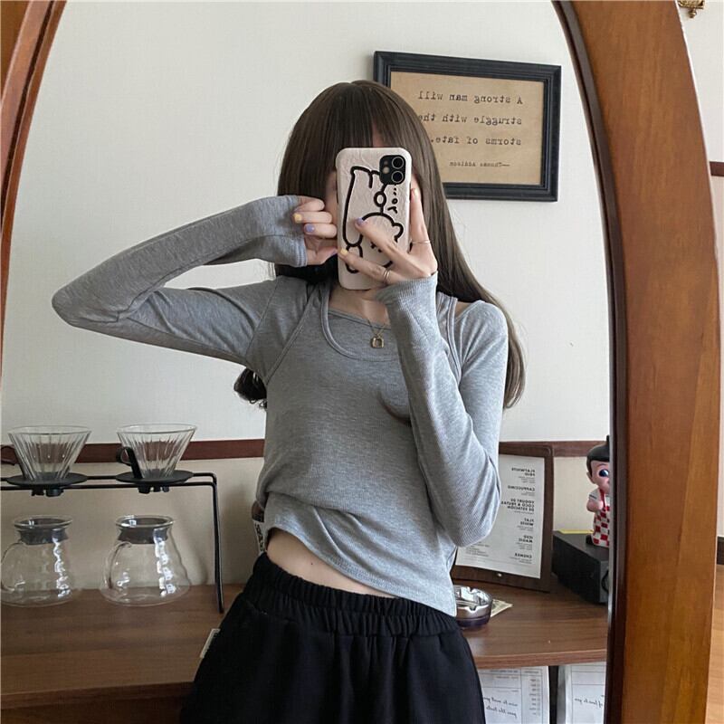 スプリング韓国ファッションTシャツシャツ レディースグレーショートゆったりトップス ロング 春物 長袖 SPM93582954591