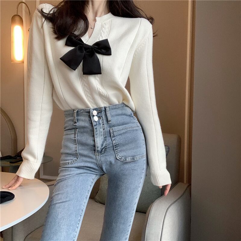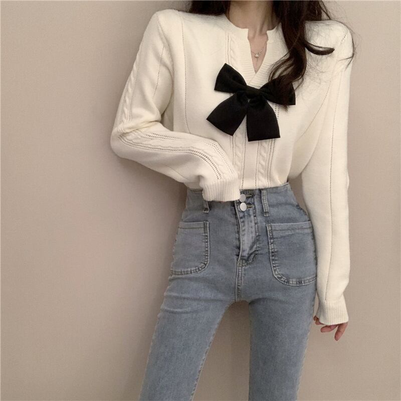 Vネックリボンセーター スプリング韓国ファッションスタイルルーズレディース 春物 SPM44163037766