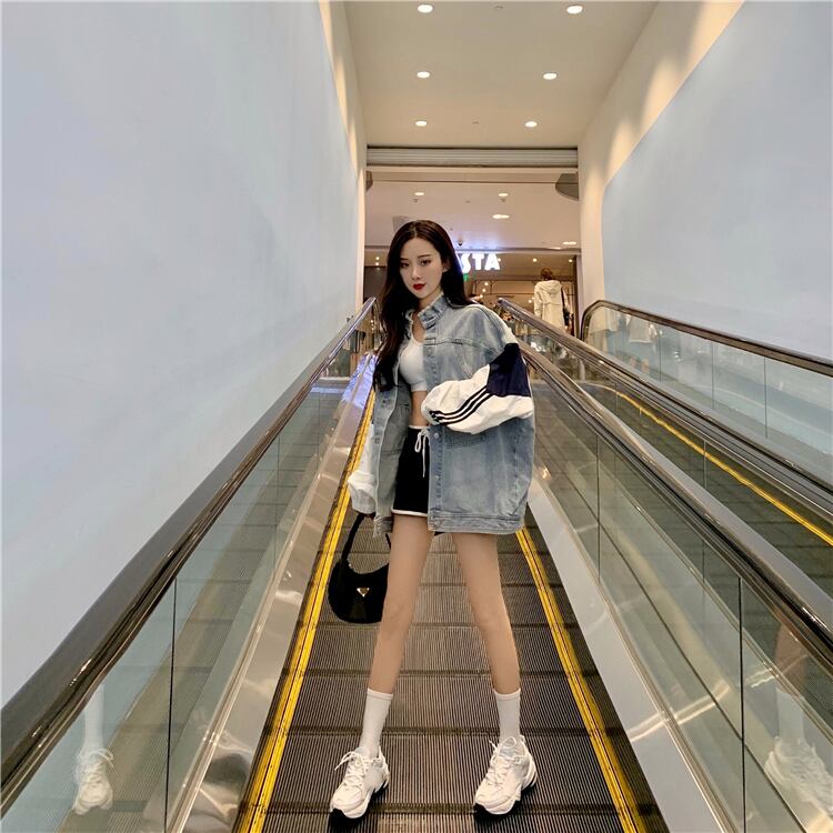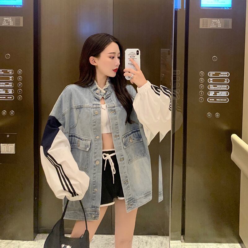 スプリング韓国ファッションカラートップス ルーズスタンダードジャケット レディース レトロ 春物 ミドル丈 SPM40740213003