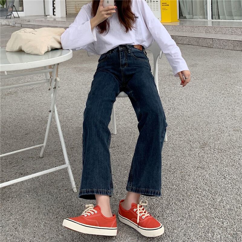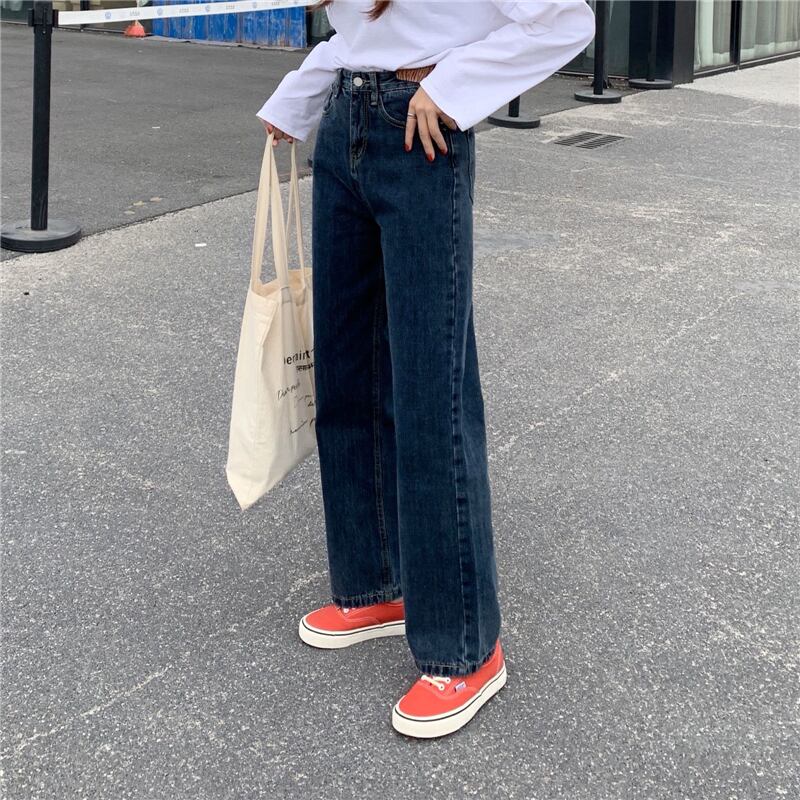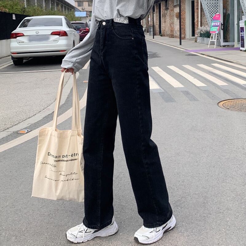 パンツ スプリング韓国ファッションルーズワイドレッグハイウェストウェストジーンズ 春物 ワイドパンツ スタイル ウエスト SPM65125295795