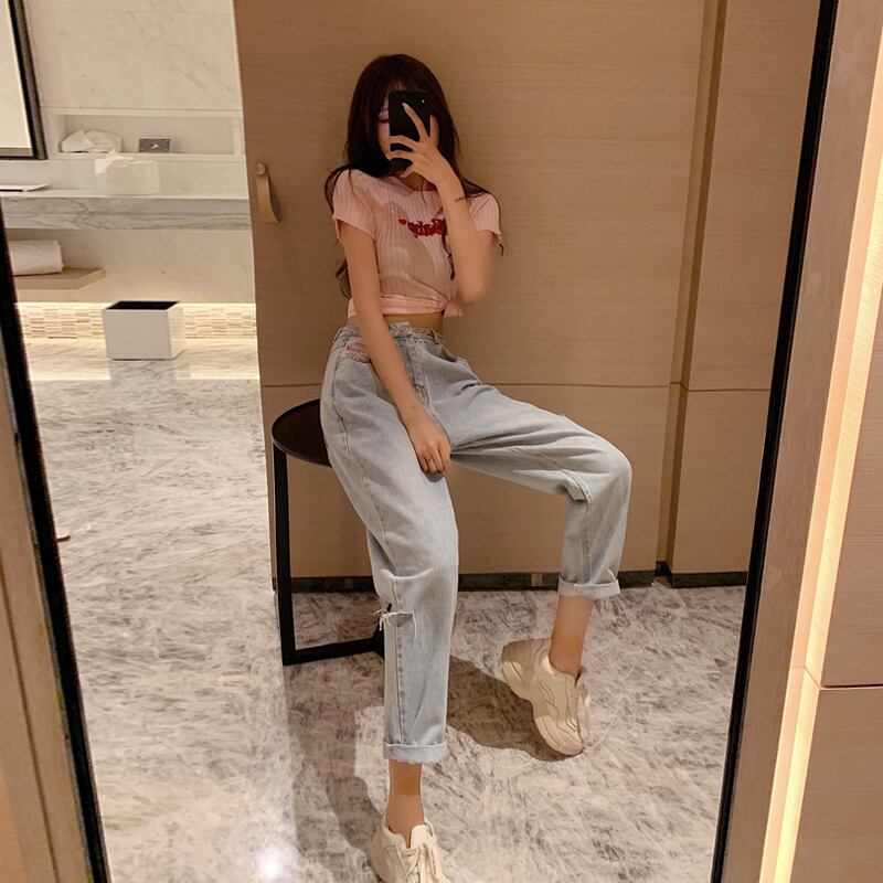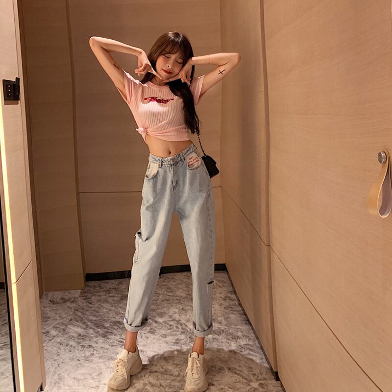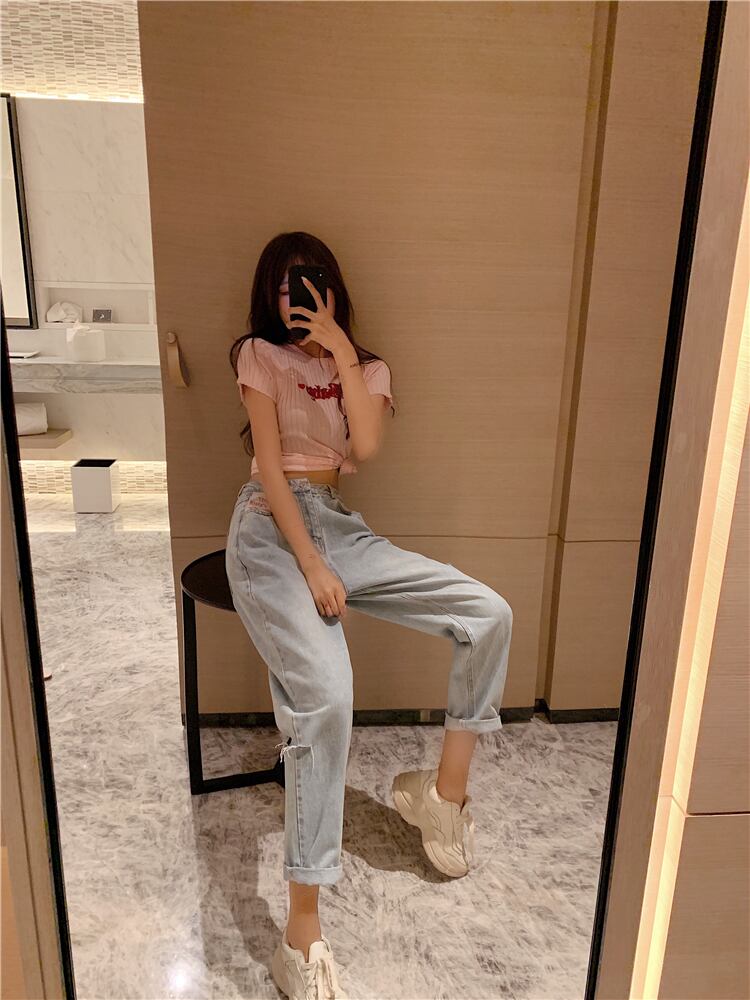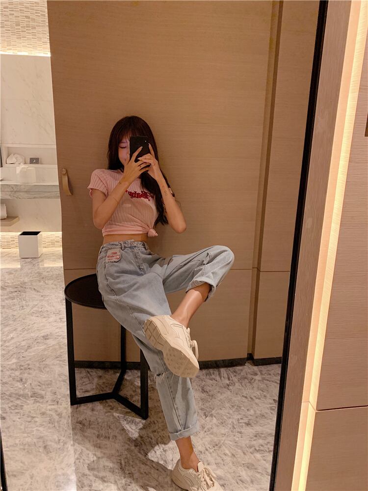 スプリングスリムパンツ 韓国ファッションスタイルハイウェストウェストジーンズ レディースルーズ 春物 ウエスト SPM25842094105