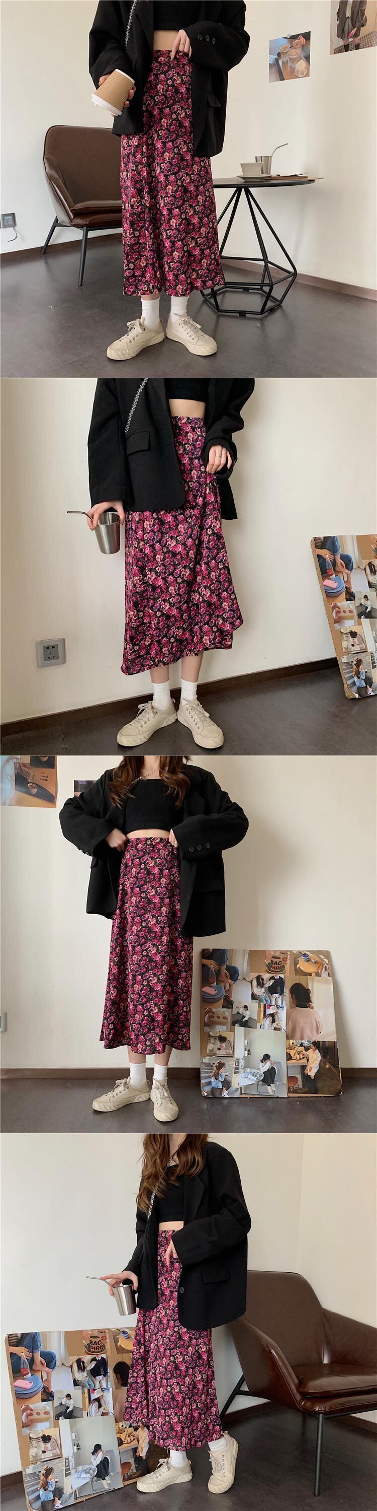 スプリングスカート レディース薄手ハイウェストAライン 春物 パープル ウエスト ミドル丈 SPM61379274629