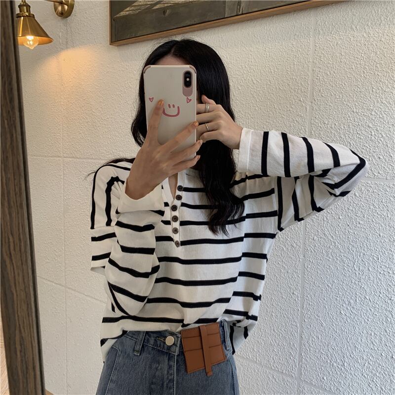 スプリング韓国ファッションセーター ストライプショートトップス ロング 春物 長袖 SPM26632968753