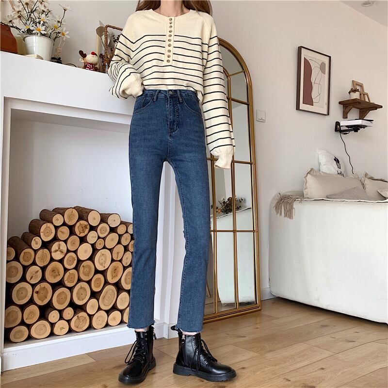 韓国ファッションスプリングハイウェストウェストパンツ スタンダードジーンズ レディーススタイルトレンド レトロ 春物 ウエスト SPM59591177966