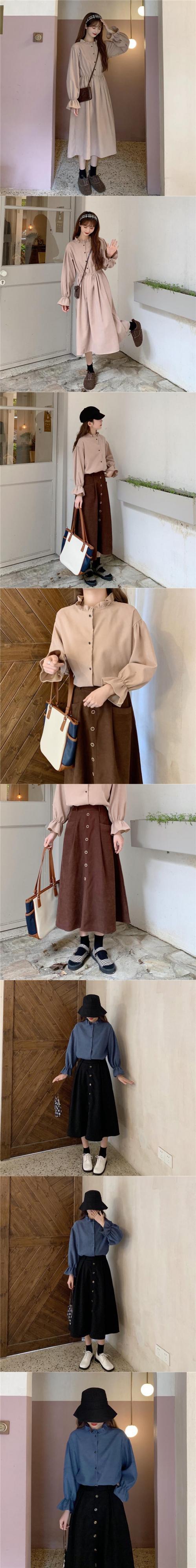 カラーワンピースレディーススプリングウェストスリーブスカート ランタンスリーブ 春物 ウエスト ミドル丈 SPM55383539687
