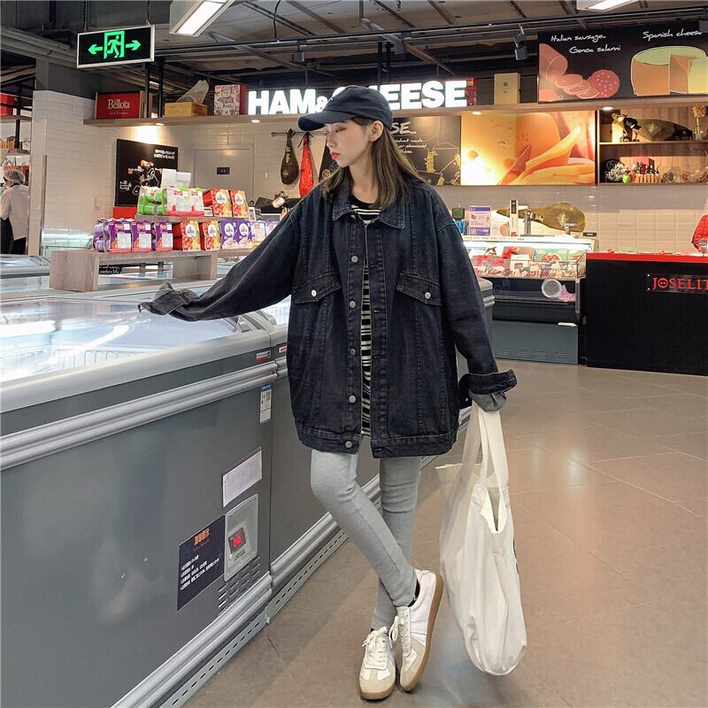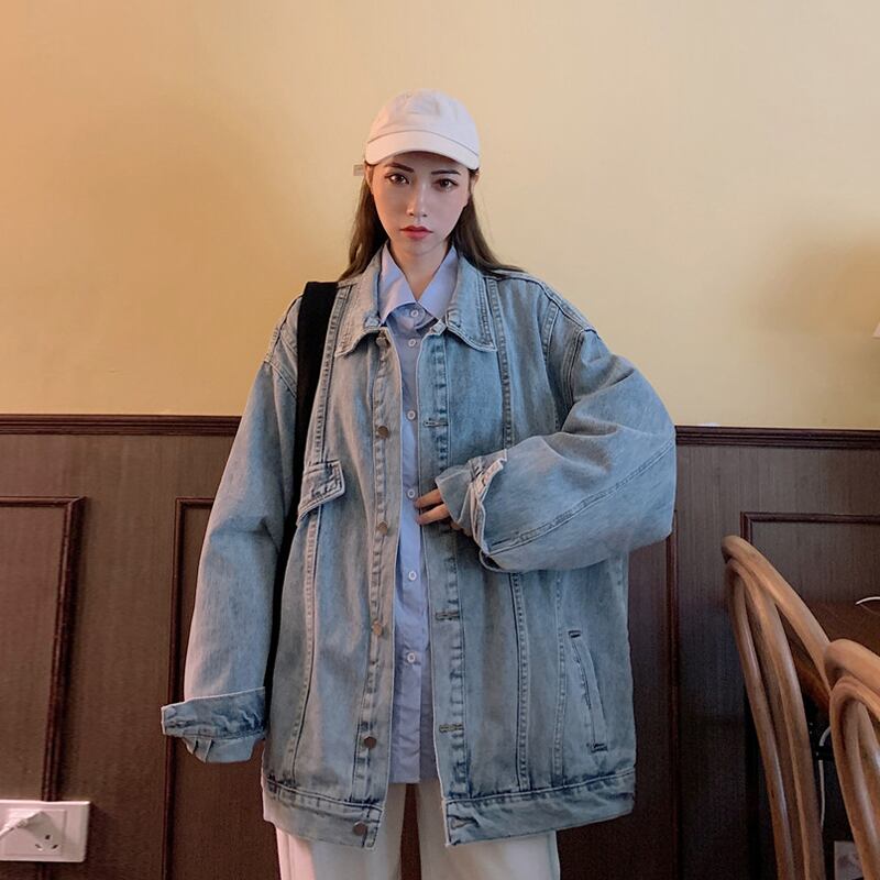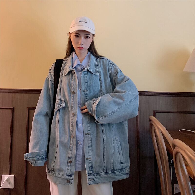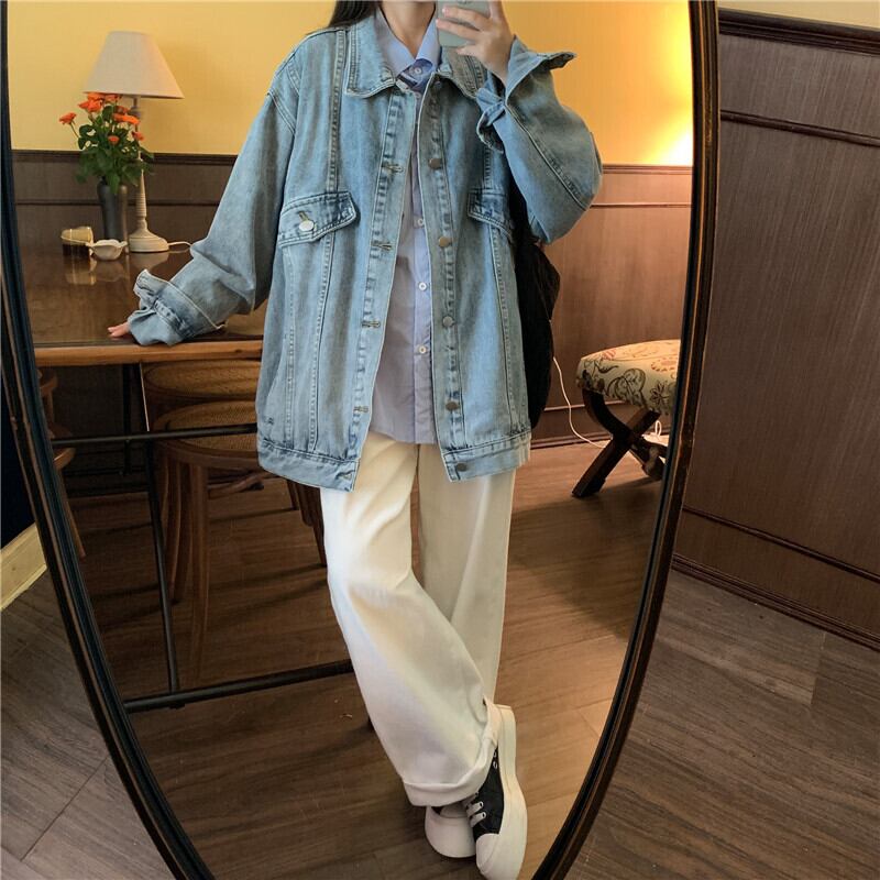 スタイルジャケット レディーススプリング韓国ファッションルーズブルートップス ロング 原宿 春物 ボーイズ 長袖 ミドル丈 SPM36897270728