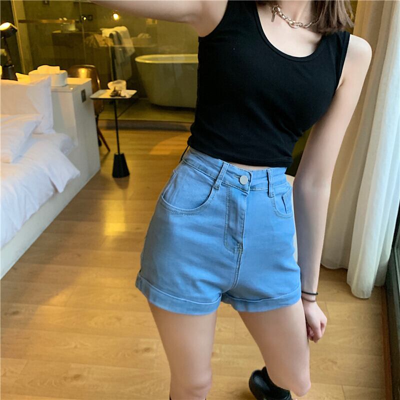 ブルージーンズ レディーススプリング夏服韓国ファッションハイウェストウェストスリムブラックショーツ パンツ 春物 夏物 スタイル ウエスト SPM35378510381