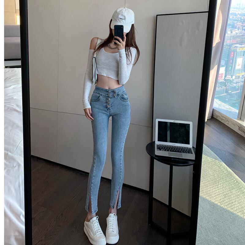 スプリング韓国ファッションハイウェストジーンズ スリムパンツ 春物 スタイル ウエスト SPM63638298787