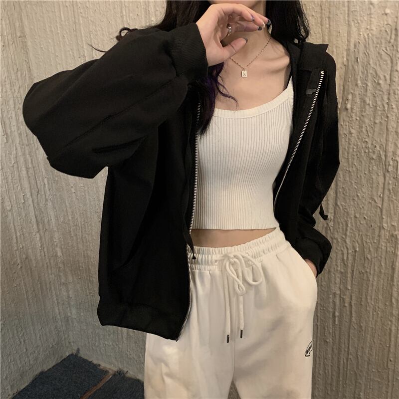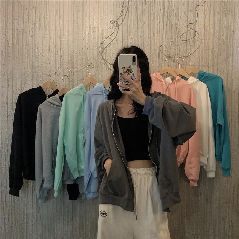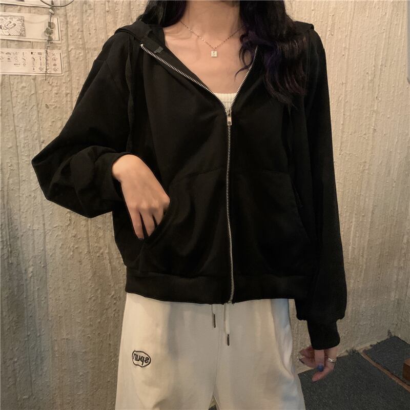 ルーズジッパーフードセーター トレンドスプリング韓国ファッションカジュアルショートジャケット 春物 SPM48009427814
