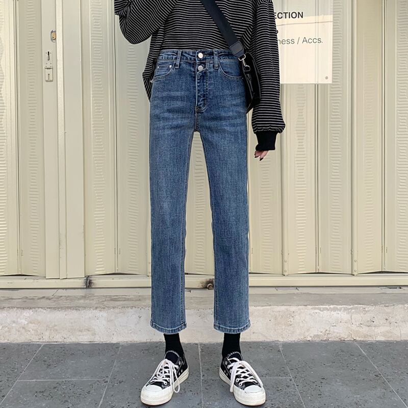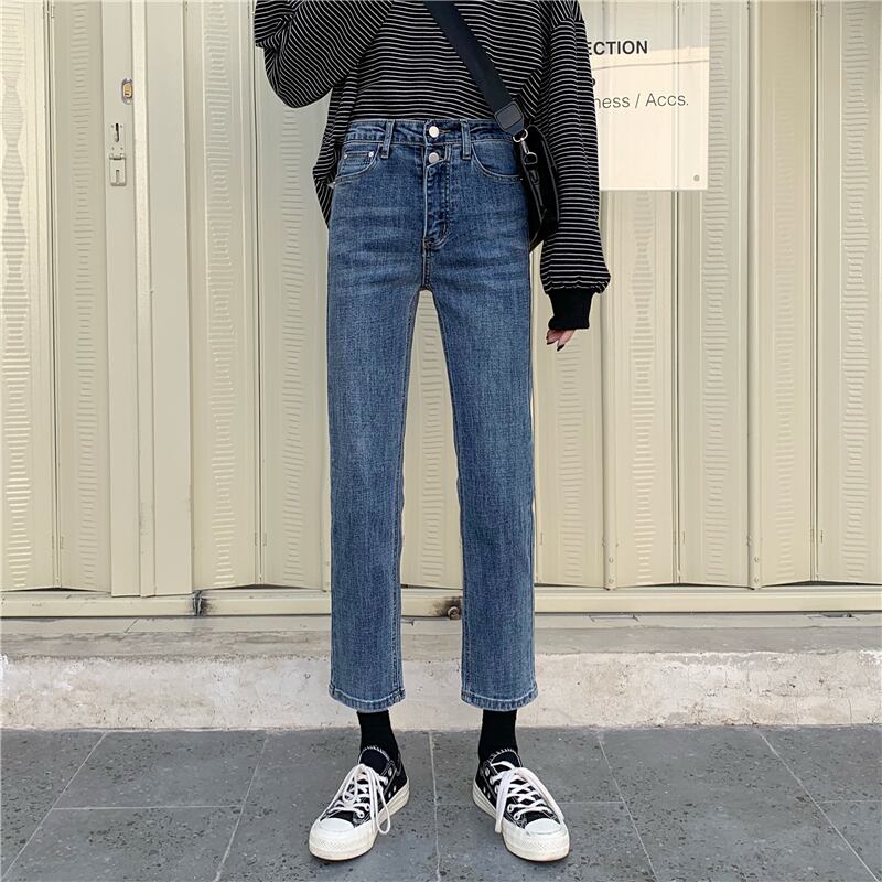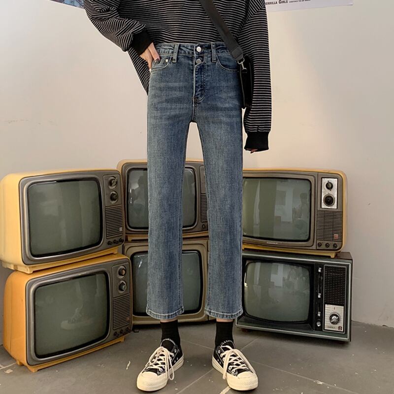スプリングスタンダードパンツ 韓国ファッションブルーハイウェストジーンズ 薄手 レトロ 春物 スタイル ウエスト SPM97542123016