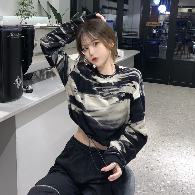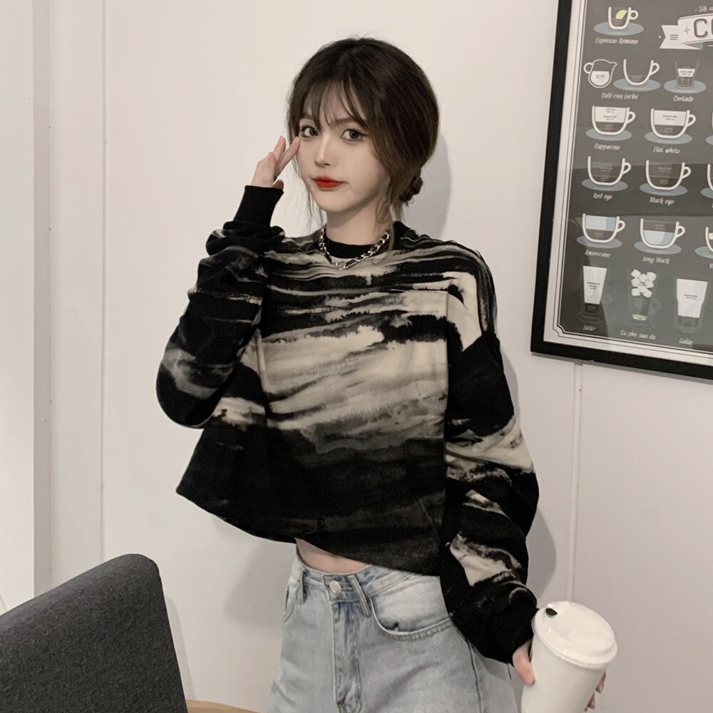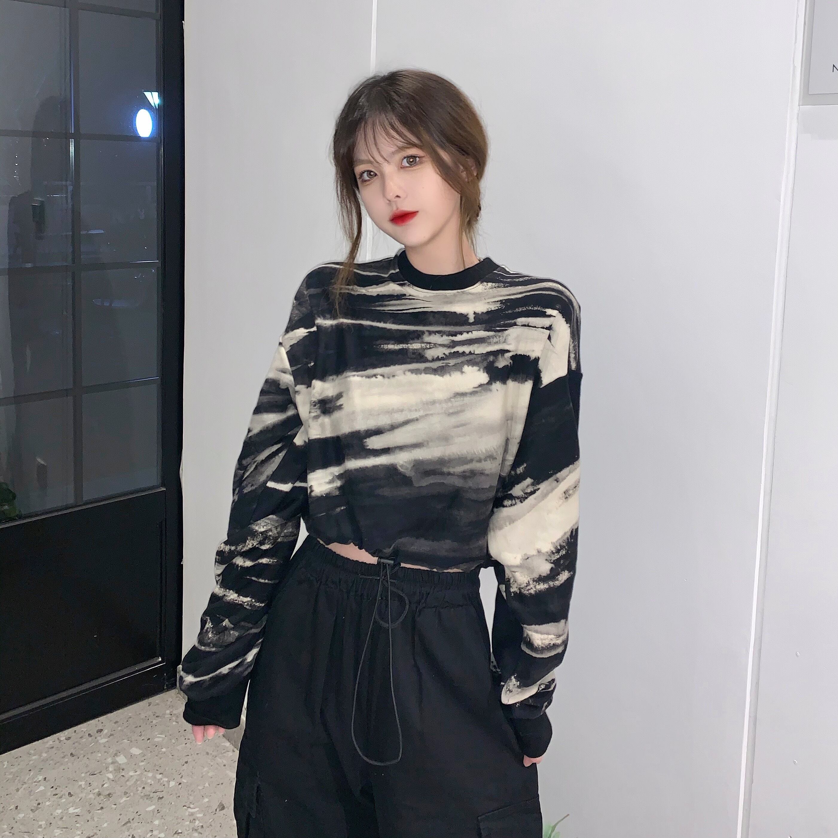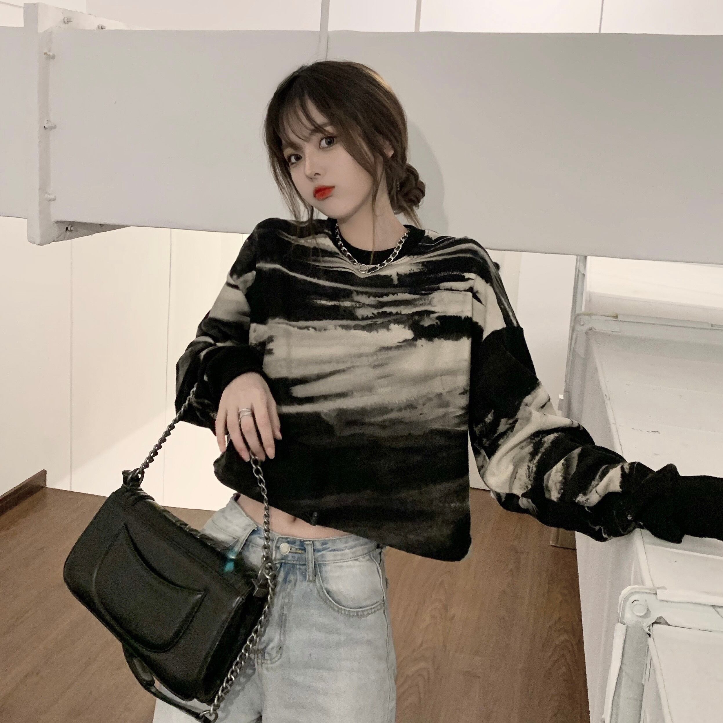 スプリング韓国ファッションブラックTシャツシャツ ルーズショートゆったりトップス ロング 春物 スタイル 長袖 SPM82410614434