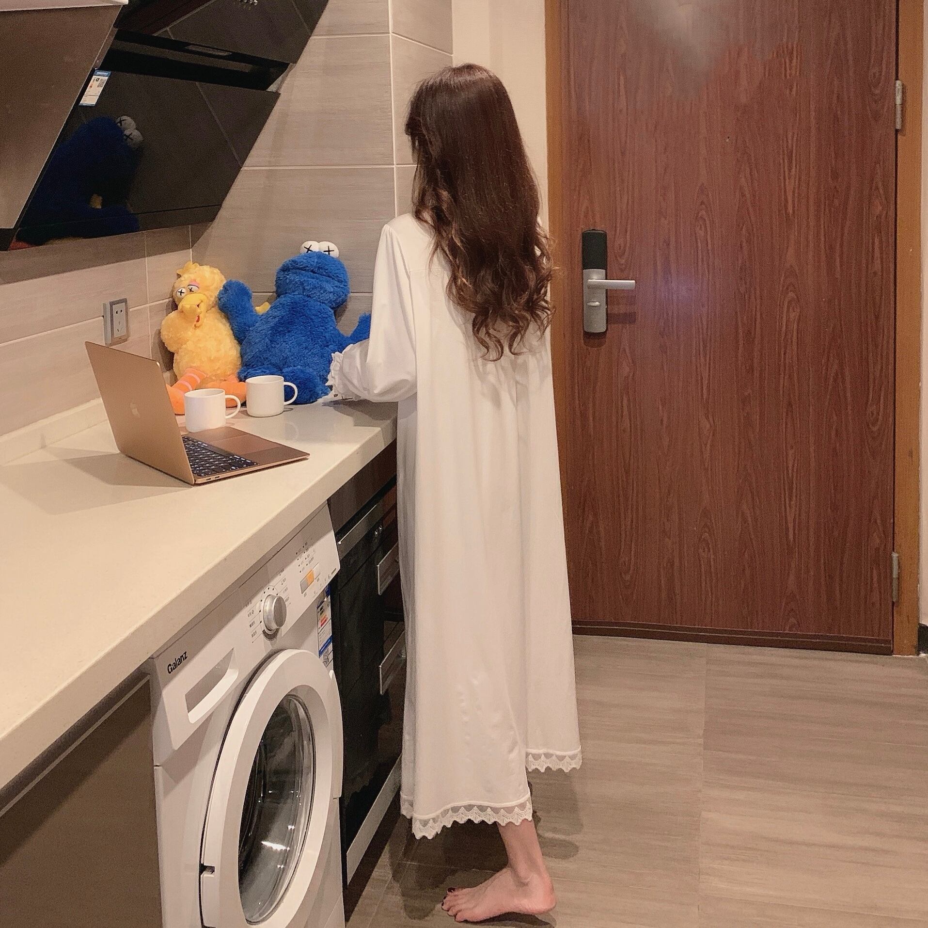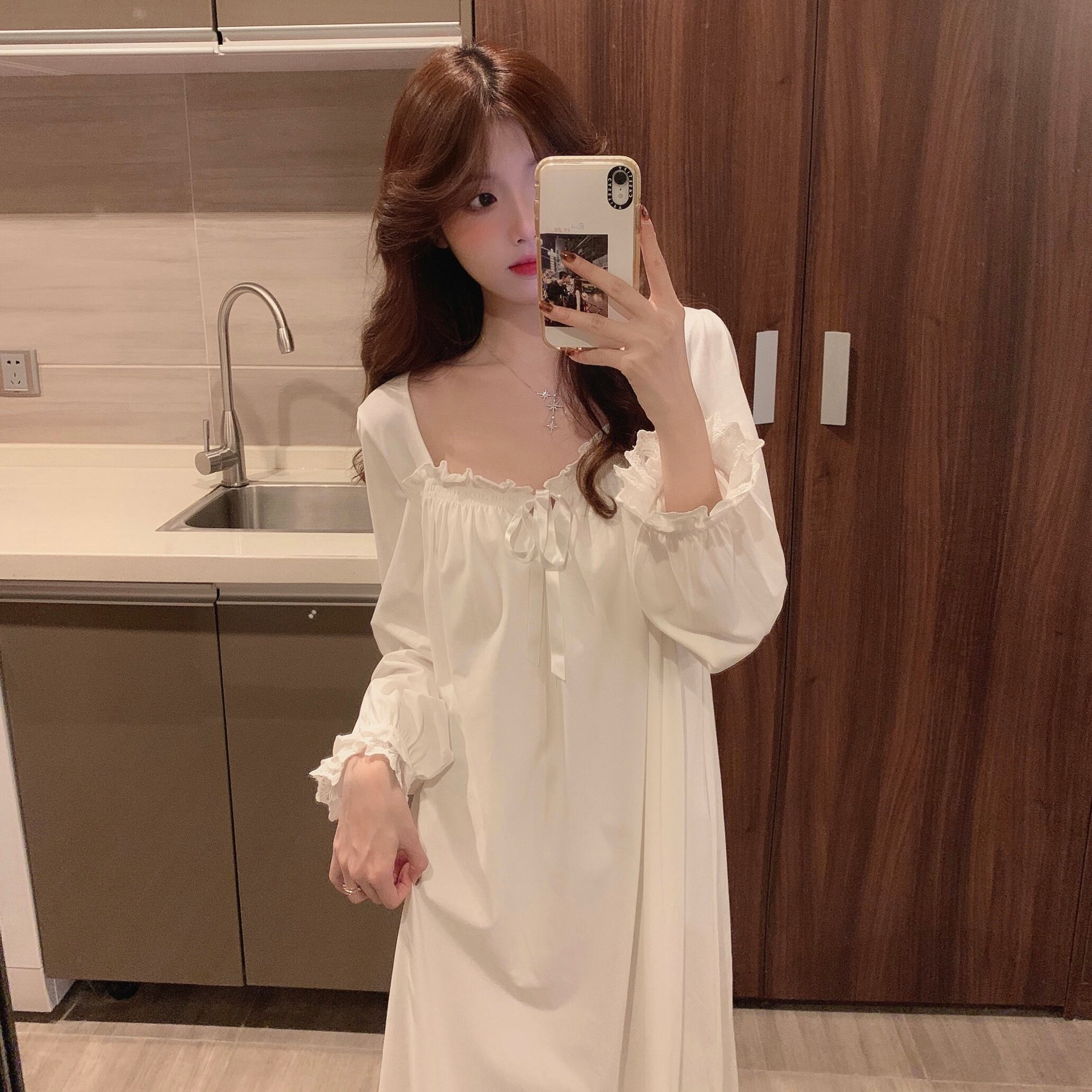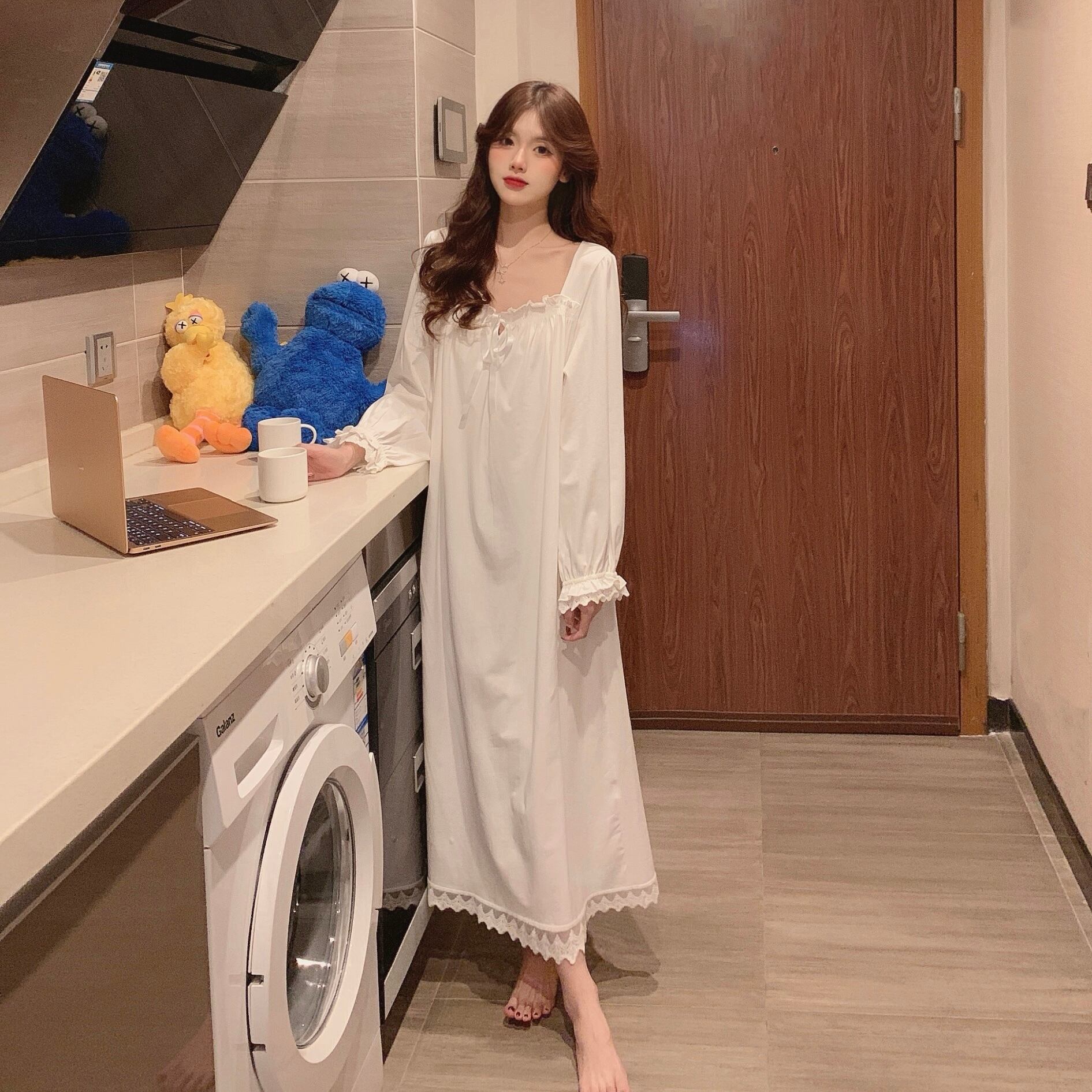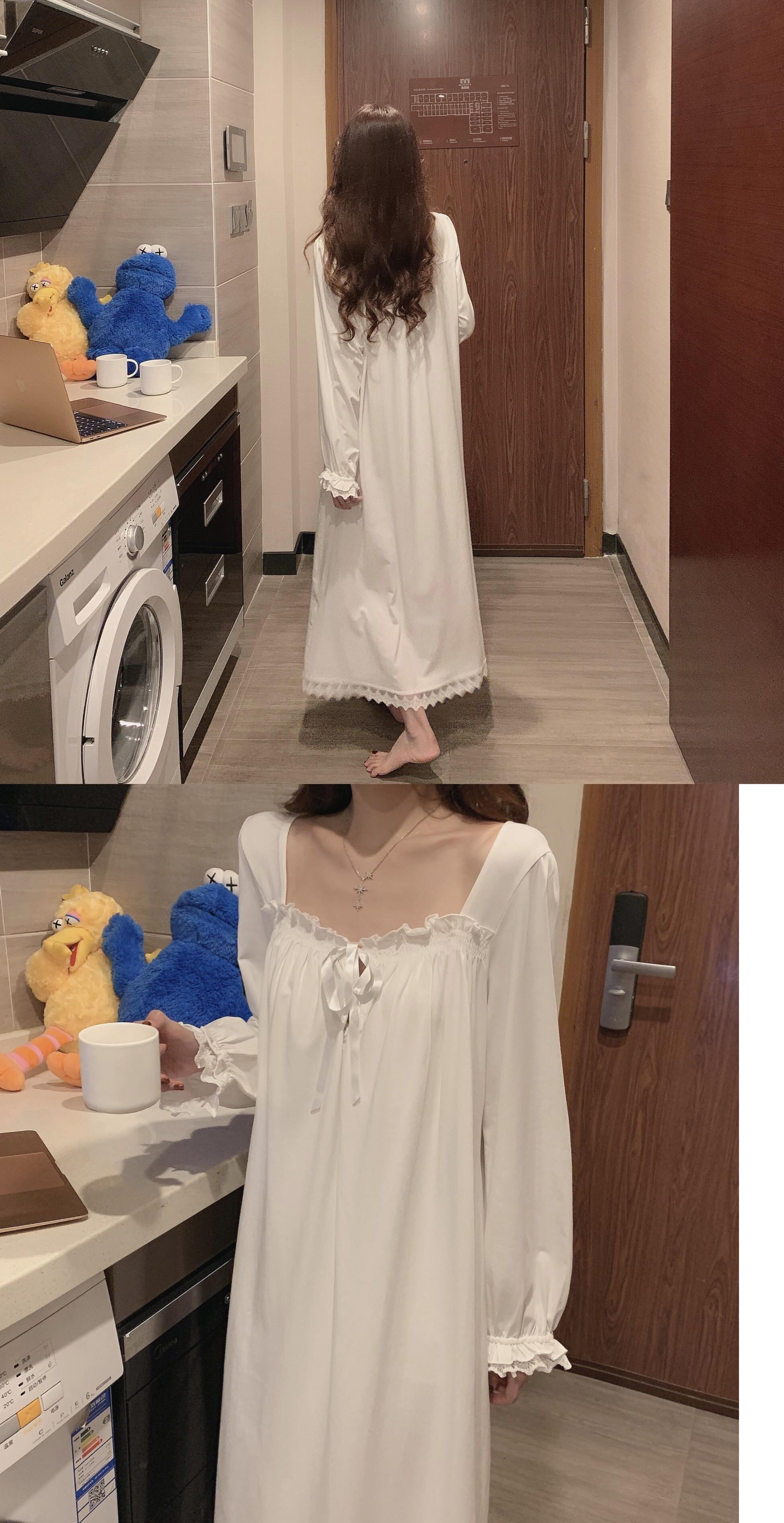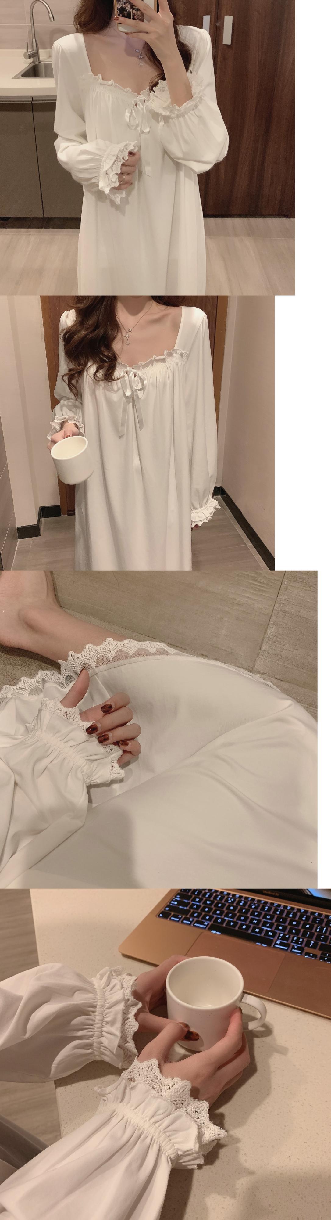 レースレディーススプリング韓国ファッションホワイト ロング 大人ガーリー スウィート キュート カジュアル 春物 スタイル ワンピース 長袖 SPM86111813238
