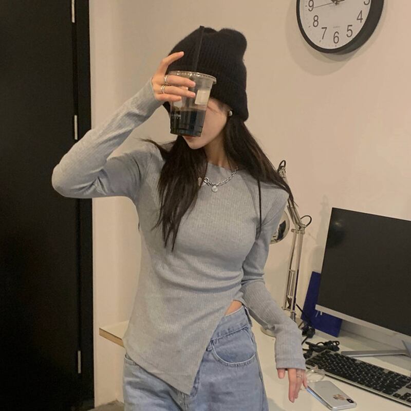 薄手ホワイトTシャツシャツ レディーススプリング韓国ファッションゆったりトップス ロング 春物 スタイル 長袖 SPM84168709322