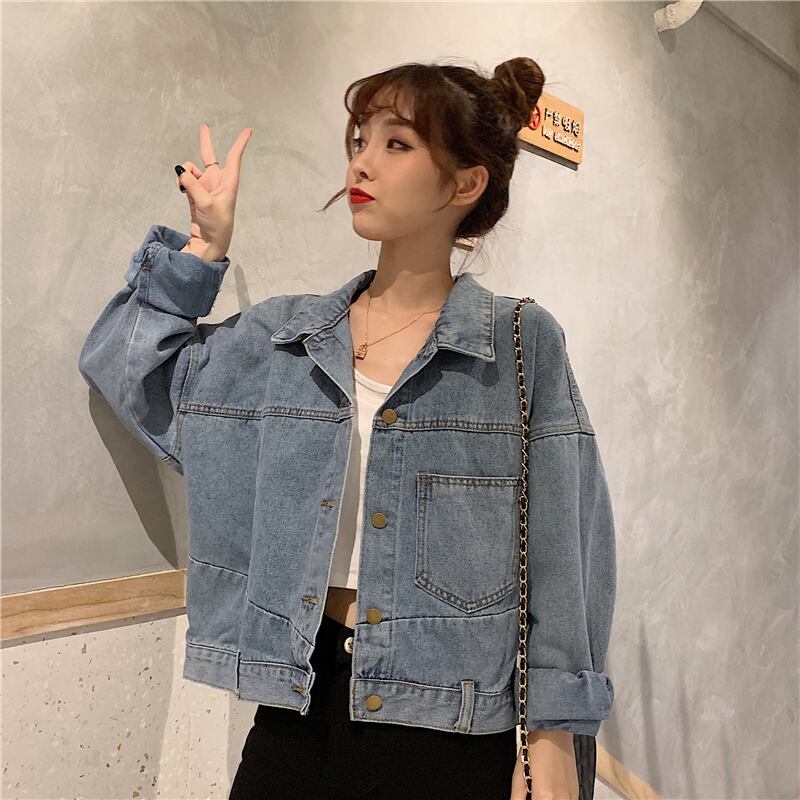 スタンダードブルージャケット レディーススプリング秋物韓国ファッションルーズショートトップス レトロ ストリート 春物 オータム スタイル SPM93931959528