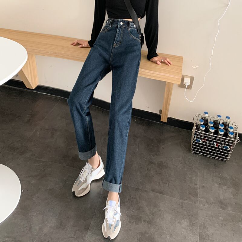 ダークブルーパンツ スプリング韓国ファッションハイウェストウェストジーンズ レディーストレンド薄手 春物 スタイル ウエスト SPM6229603469