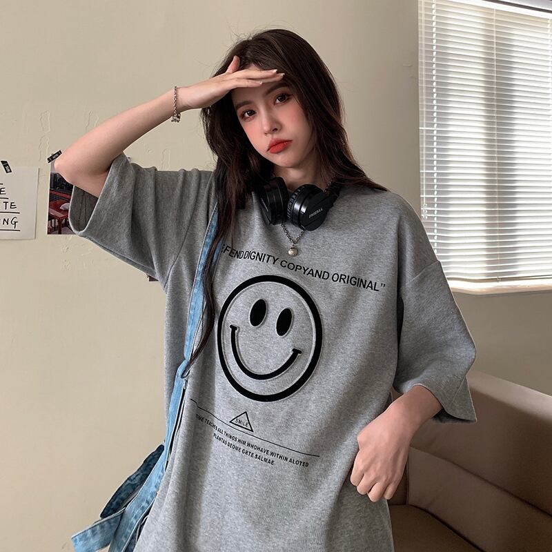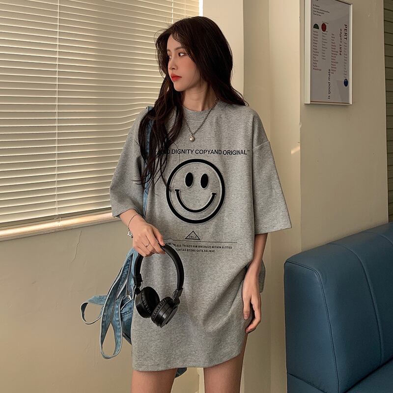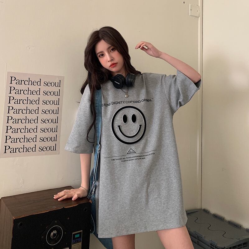 ルーズプリントTシャツシャツ レディーストレンドスプリング韓国ファッションロングゆったりトップス 春物 スタイル SPM24492327269