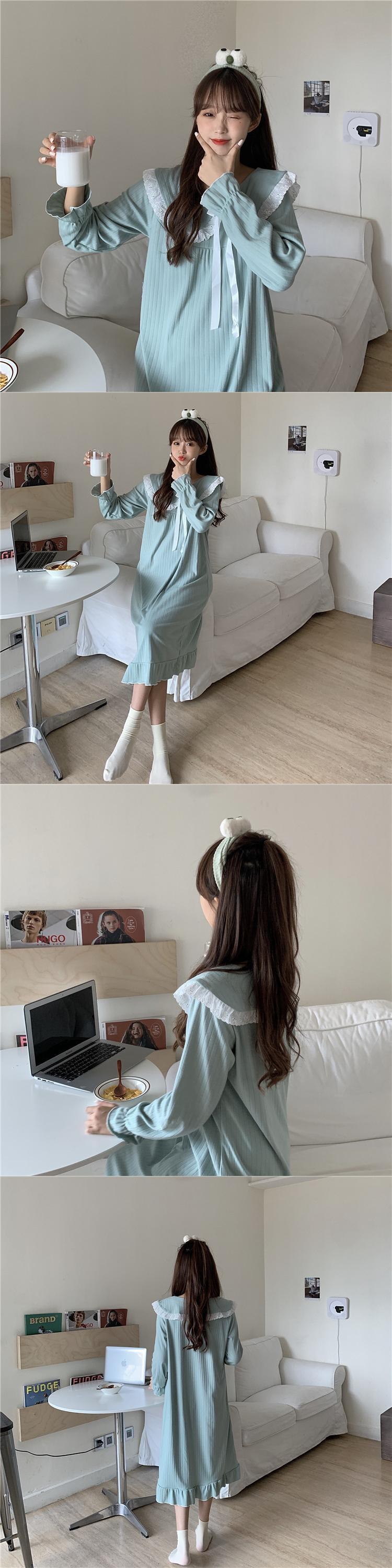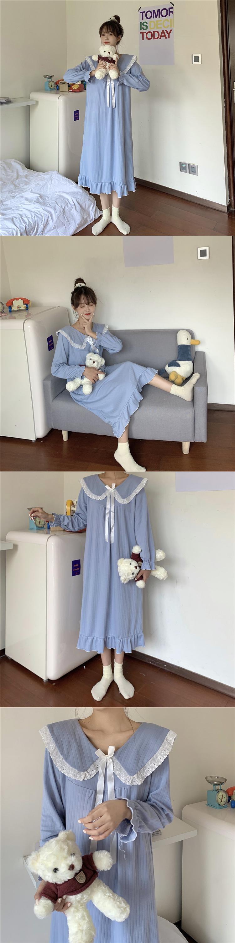 レースカラーレディーススプリング韓国ファッション 大人ガーリー スウィート キュート カジュアル 春物 ワンピース SPM47981896746