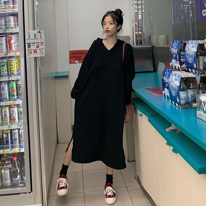 ワンピーススプリング韓国ファッションスタイルフードセーター ロングスカート 春物 ミドル丈 SPM67098655817