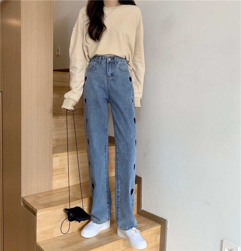 ジーンズ スプリング韓国ファッションハイウェストウェストパンツ ルーズワイドレッグ 春物 ワイドパンツ ウエスト SPM24535596184