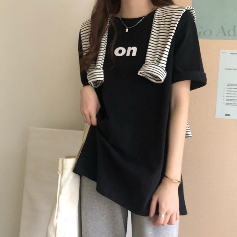 ブラックゆったりシャツ トップス スプリング韓国ファッションルーズTシャツレディーストレンド 春物 スタイル SPM79691095304