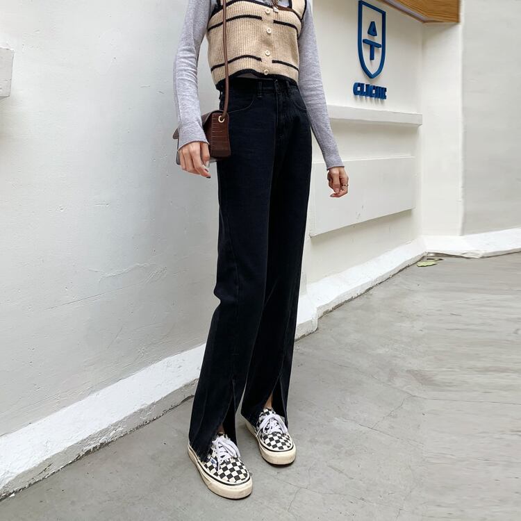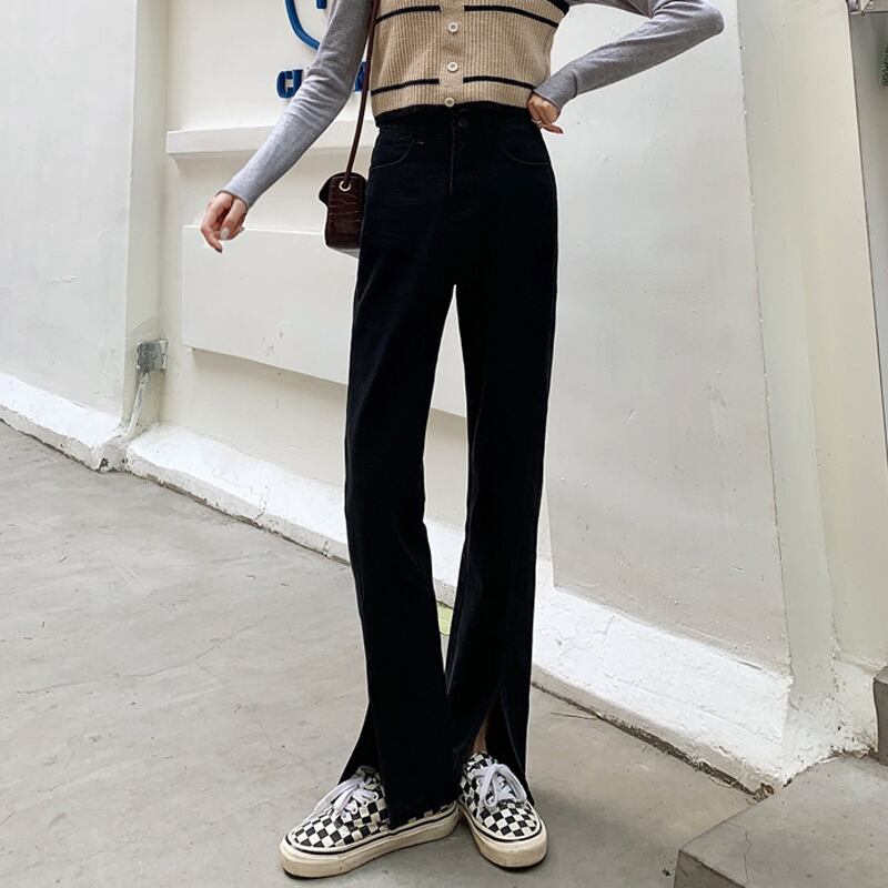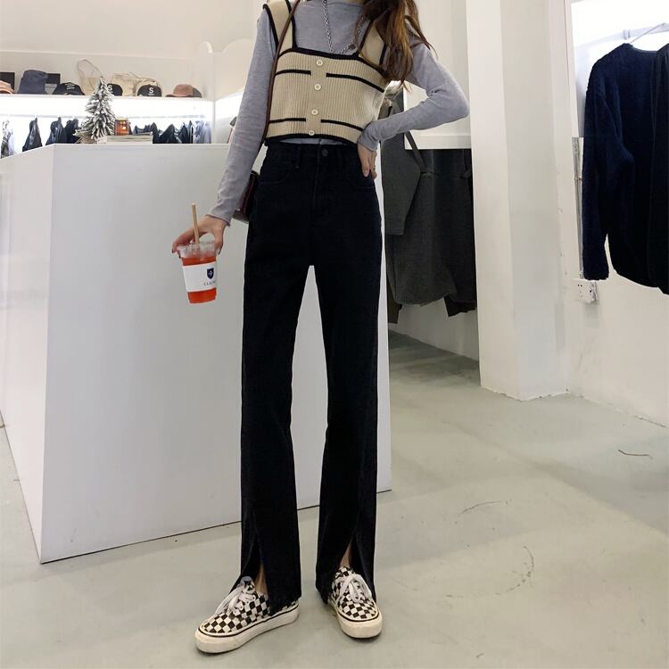 ジーンズ スプリングブラック薄手ハイウェスト レッド レース 春物 レースアップ ウエスト SPM68949939768