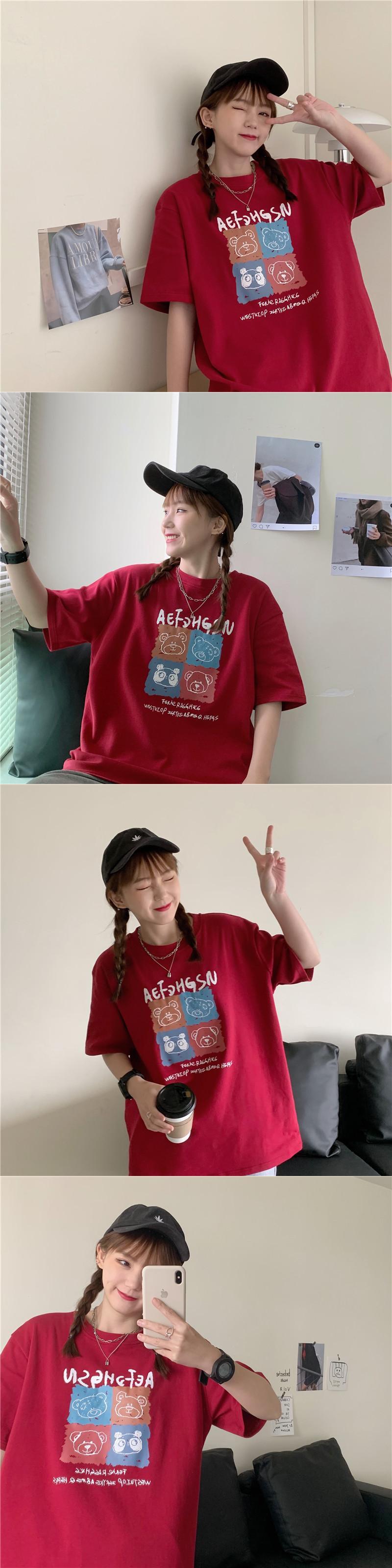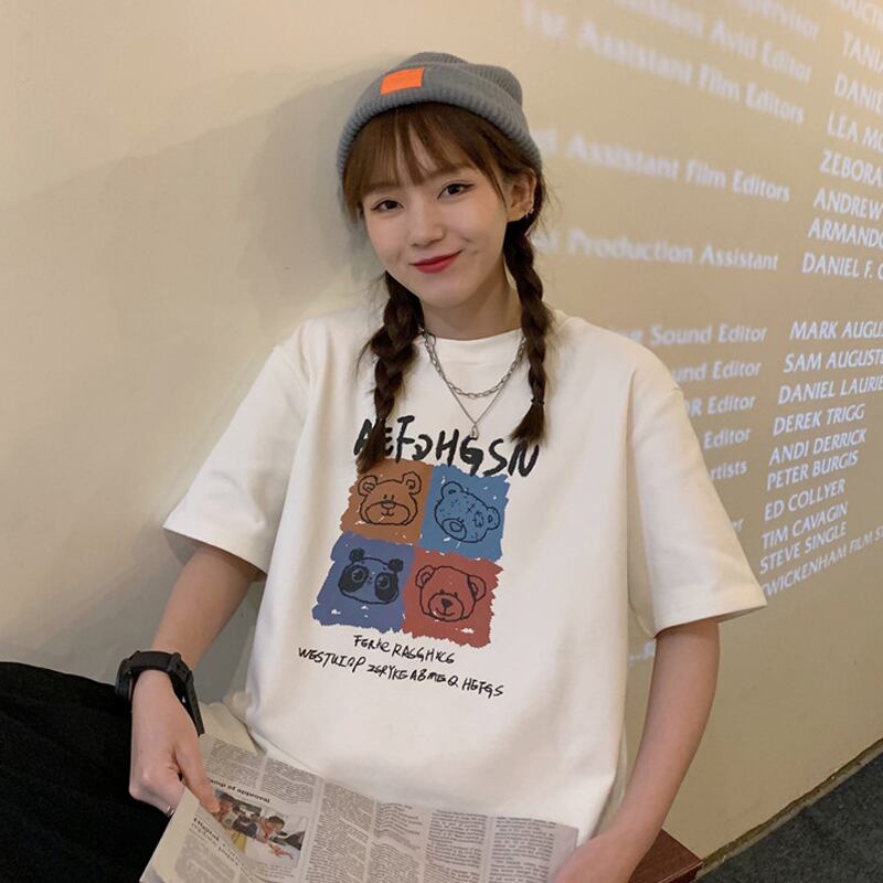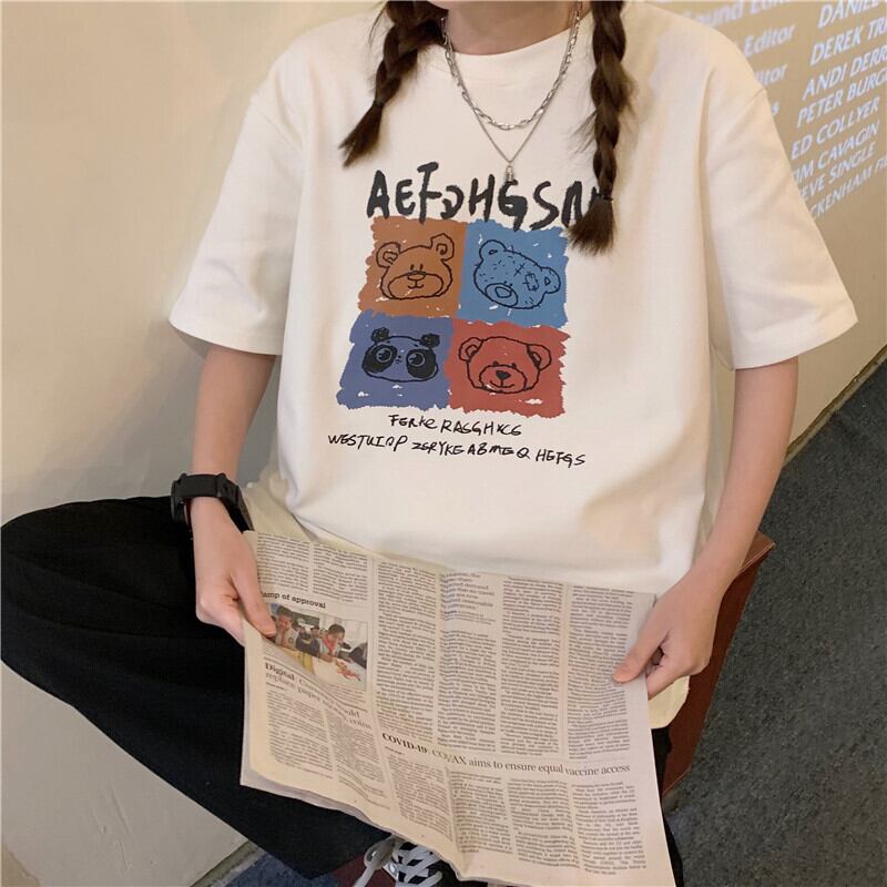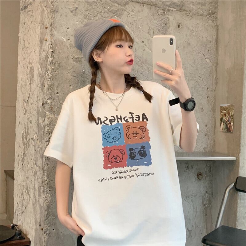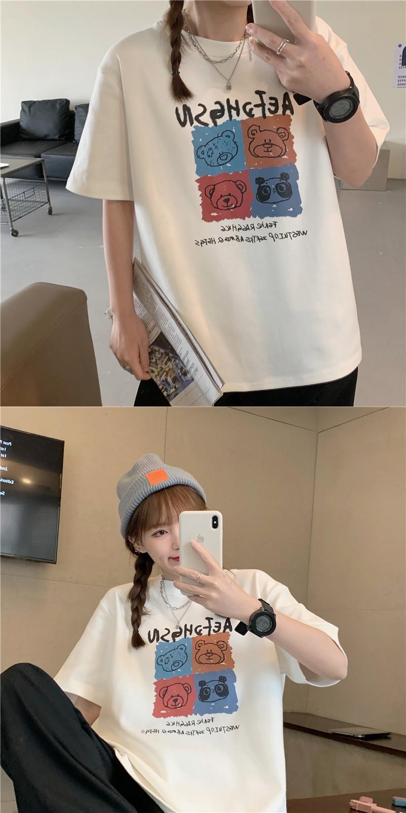 プリントTシャツシャツ スプリングスタイルホワイトゆったりトップス 春物 ミドル丈 SPM60499124902