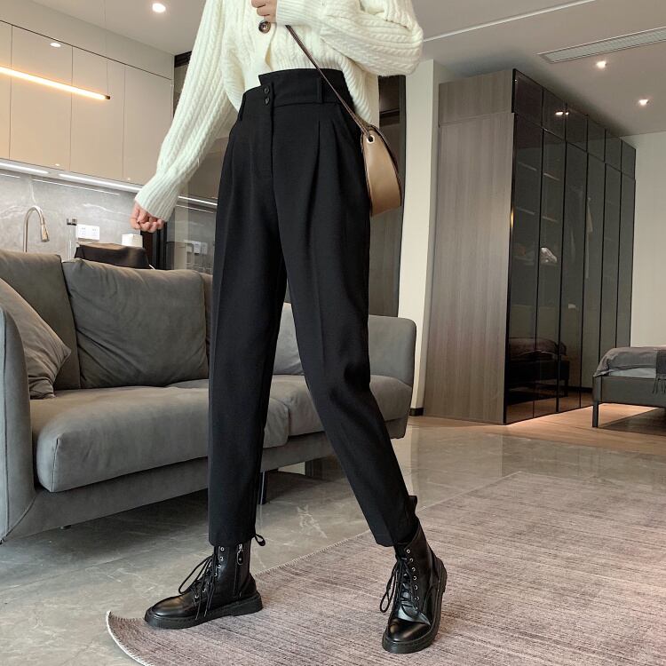 スプリング韓国ファッションブラックハイウェストウェストパンツ Flowerデザイン カジュアルレディース 春物 フラワーデザイン スタイル ウエスト SPM98063864187