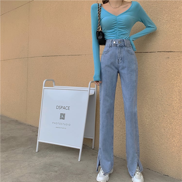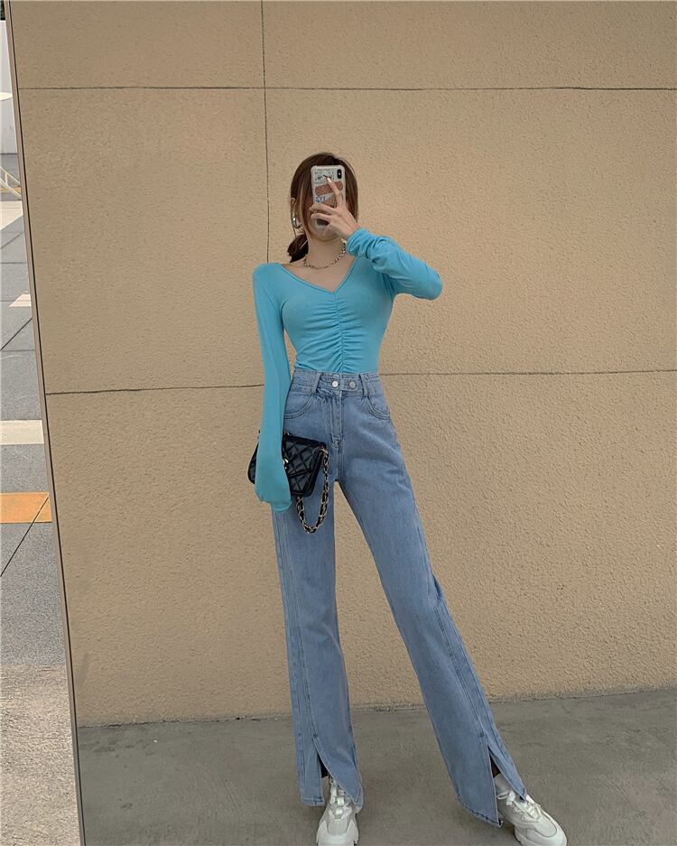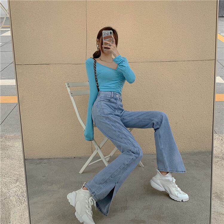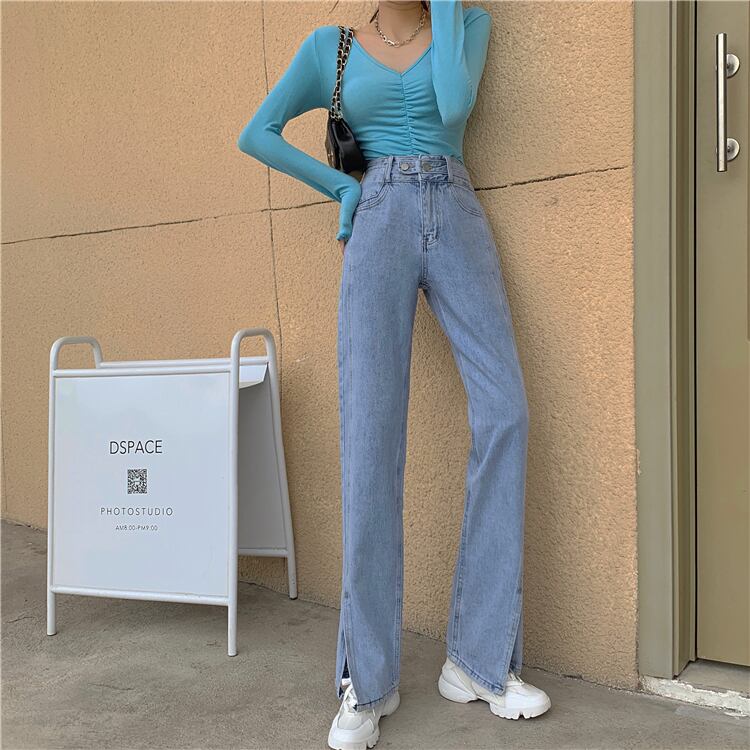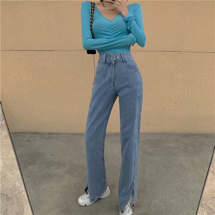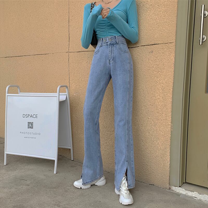ワイドレッグパンツ スプリングルーズブルーハイウェストウェストジーンズ 春物 ワイドパンツ ウエスト SPM75249682955