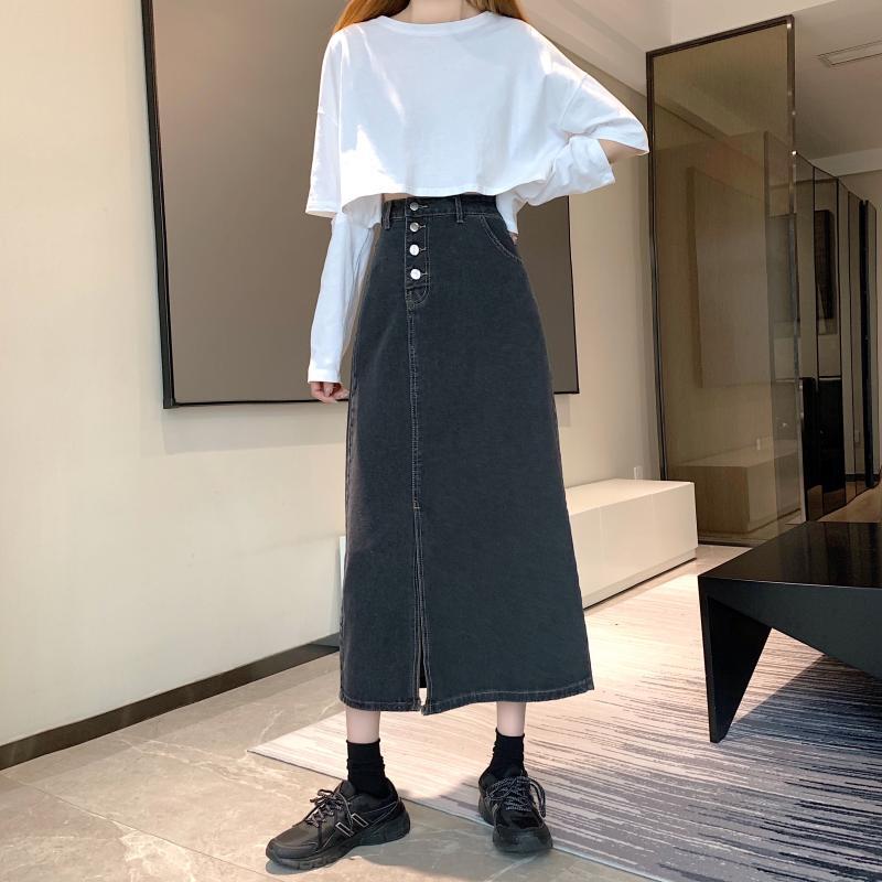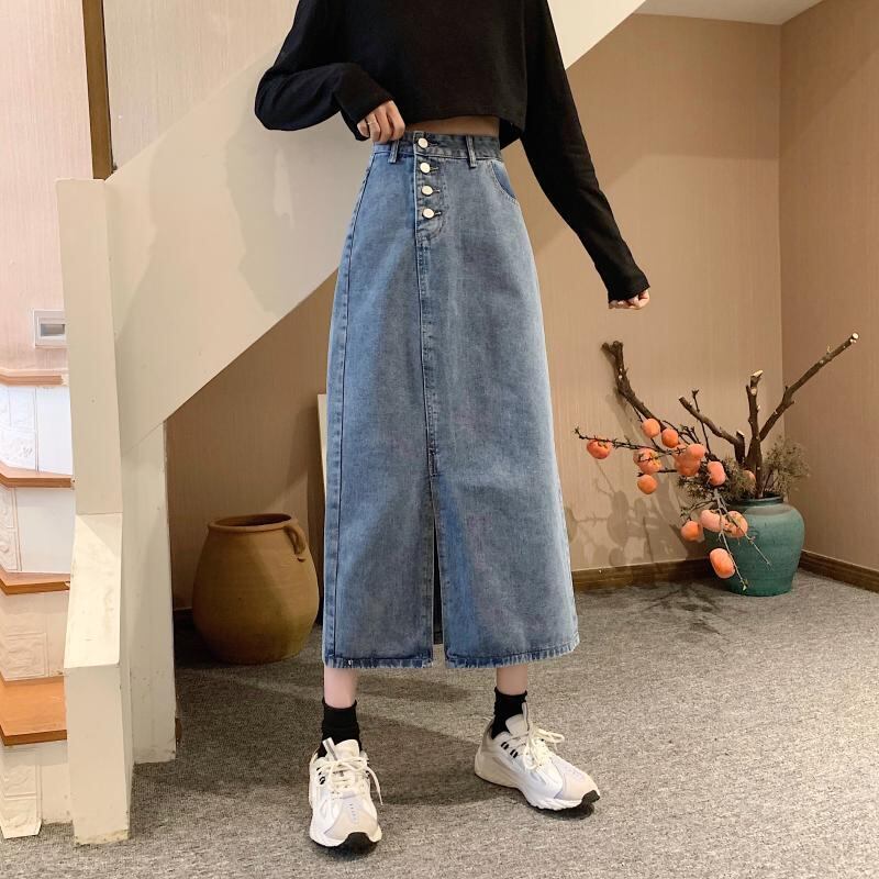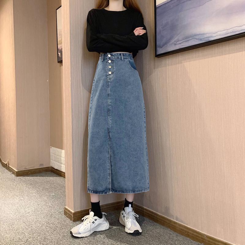 スタンダードハイウェストウェスト薄手スカート レディーススプリングブルーAライン レトロ 春物 ウエスト ミドル丈 SPM94722617583