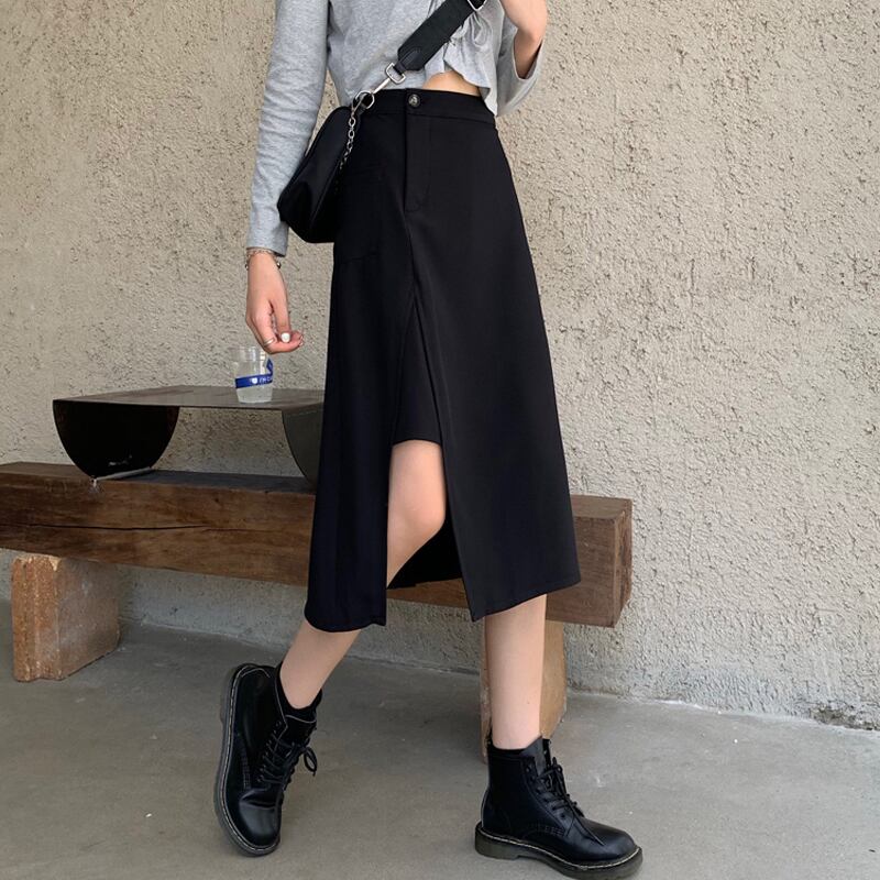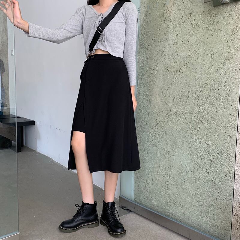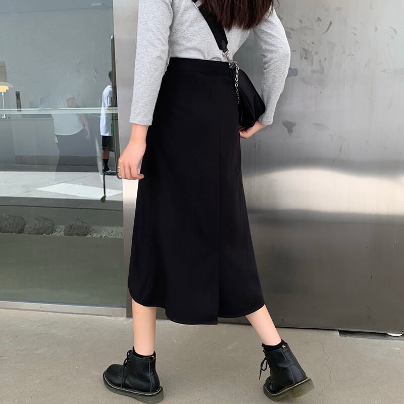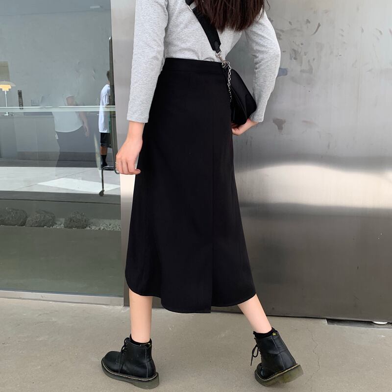 ブラックスカート レディーススプリング秋物薄手ハイウェストAライン 春物 オータム ウエスト ミドル丈 SPM7975322949
