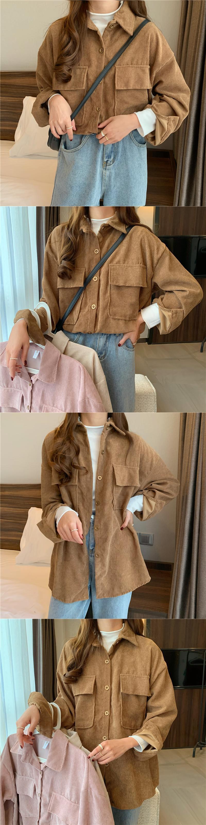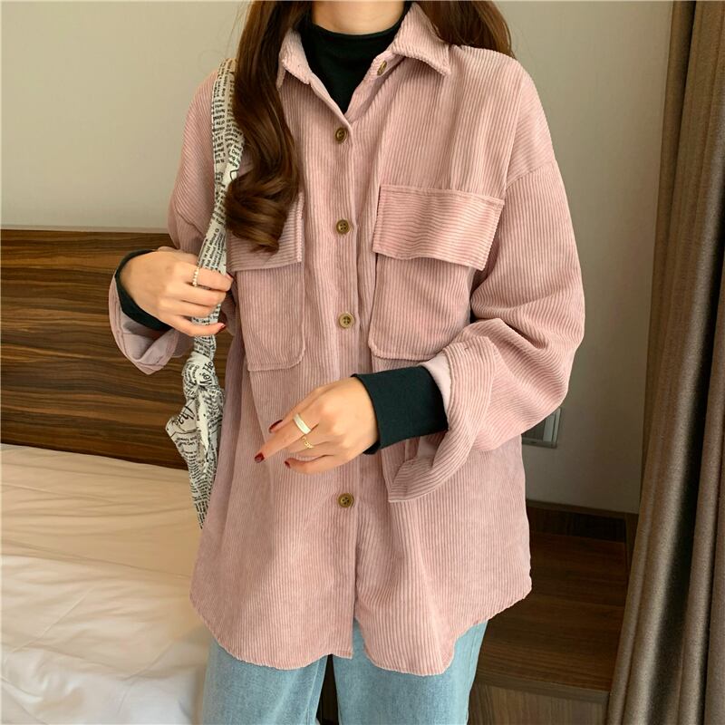 スタンダードコーデュロイシャツ スプリングスタイル韓国ファッションルーズカラージャケット レトロ 春物 ミドル丈 SPM80116305645