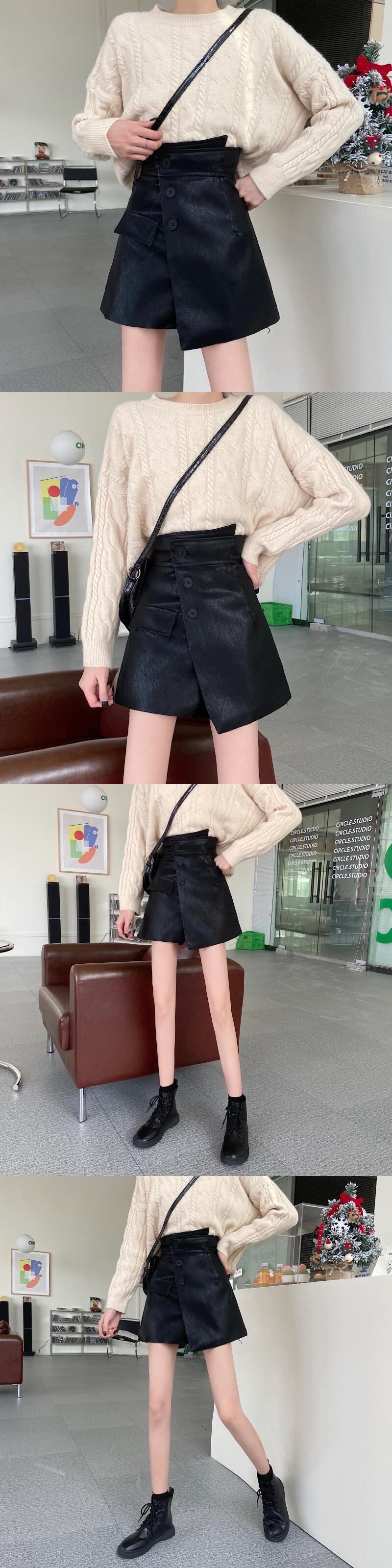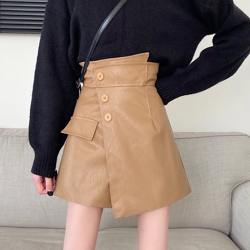 レザースカート ハイウェストウェストレディーススプリングショートAライン 春物 ウエスト SPM28160918238