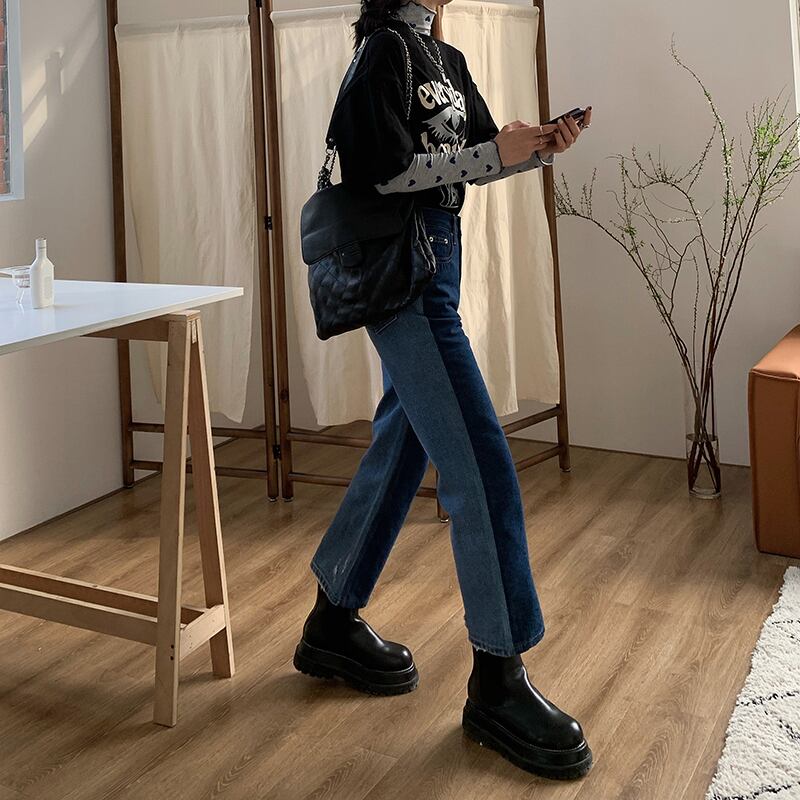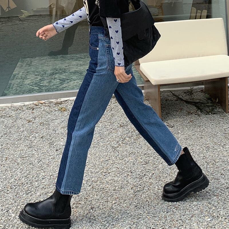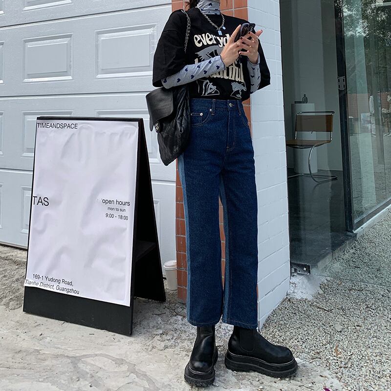 バックカラーパンツ スプリングハイウェストジーンズ レディーススタンダード薄手 レトロ 春物 ウエスト SPM16496897280