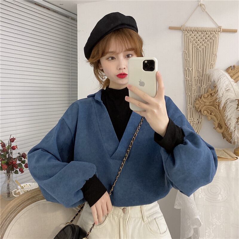 シャツ スプリング韓国ファッションルーズカジュアルトップス ロング 春物 ステッチ 長袖 SPM7989180041